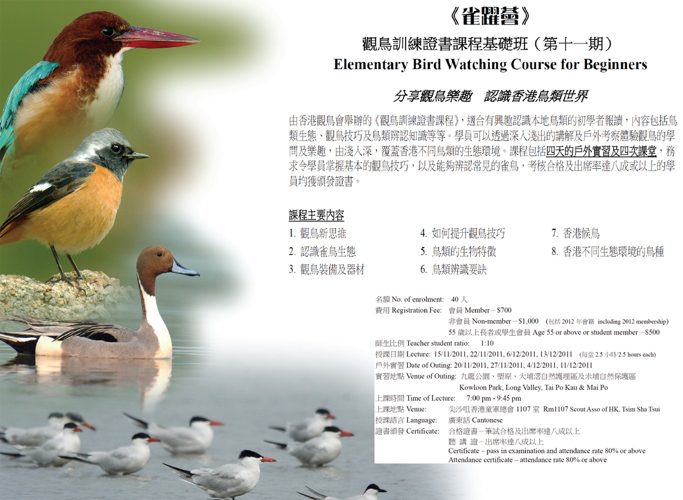 下屆觀鳥基礎班,預計於2012年春季開班,