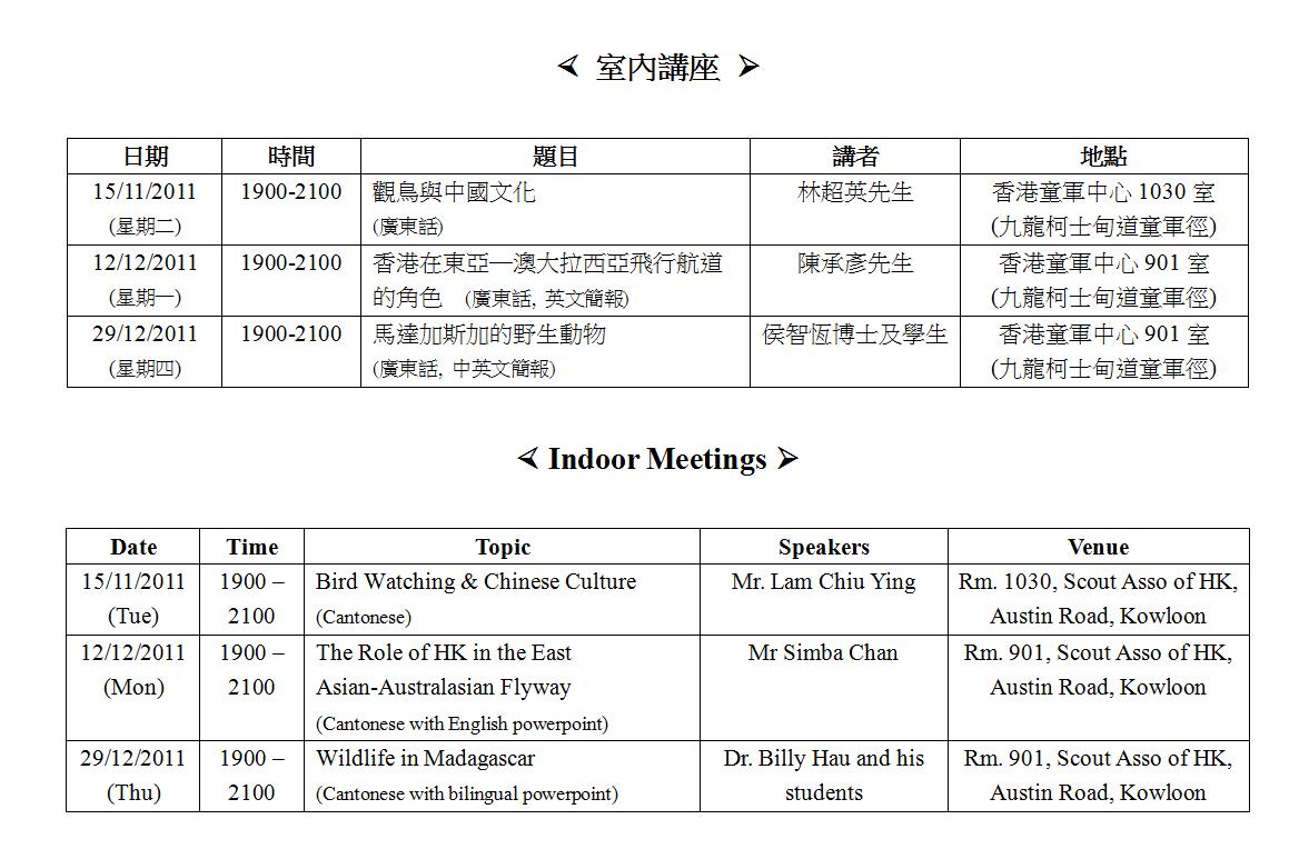 <Updated>室內講座IndoorMeeting-2011年10月至12月Oct to Dec 2011