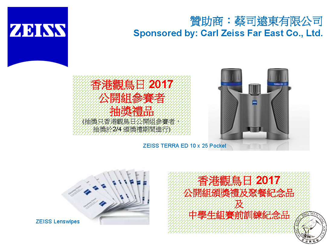 » 香港觀鳥日 2017 ~ 贊助/獎品/禮品