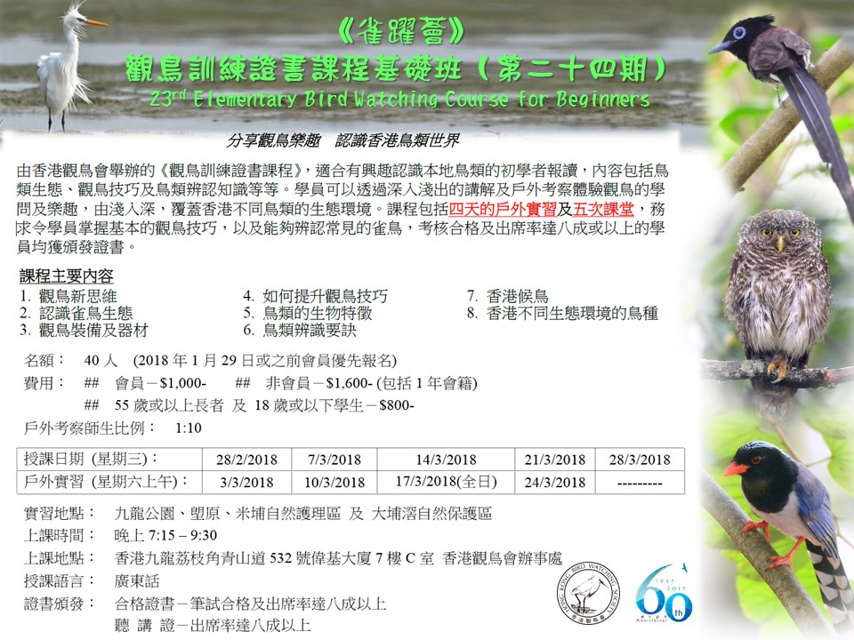 [Others 其他] 《雀躍薈》觀鳥訓練證書課程基礎班(第二十四期)