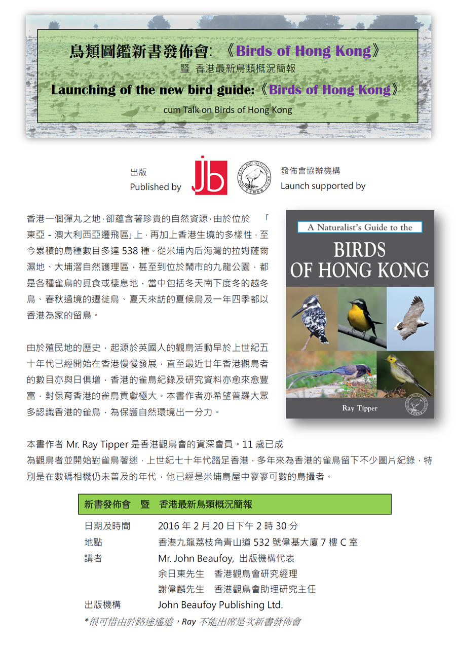 新書發佈會: 《Birds of Hong Kong》暨香港最新鳥類概況簡報