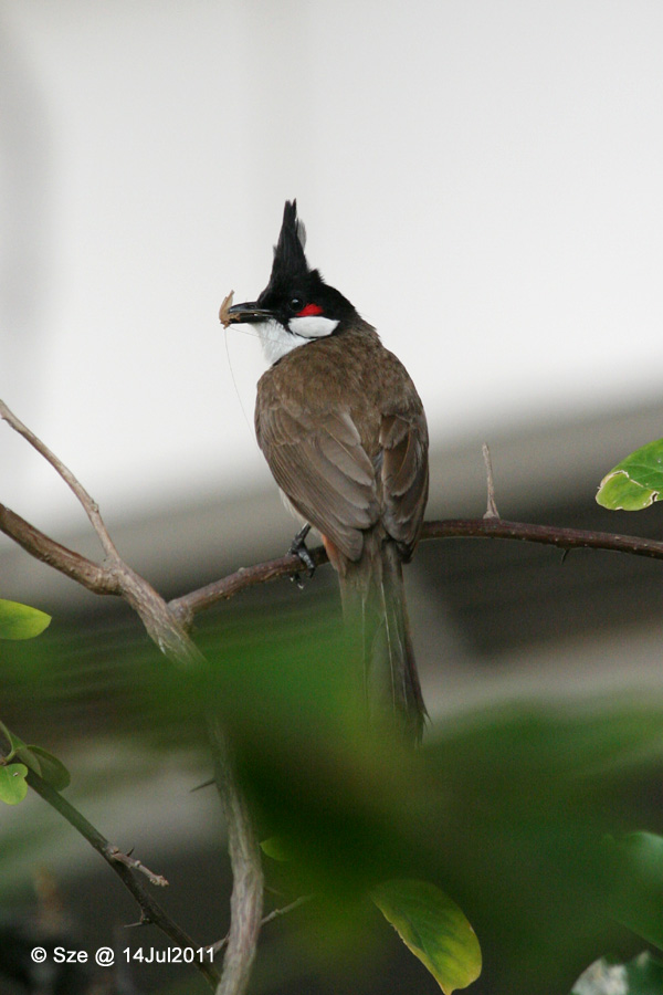 大部份紅耳鵯均愛在枝葉生長濃密的矮小灌木內築巢,