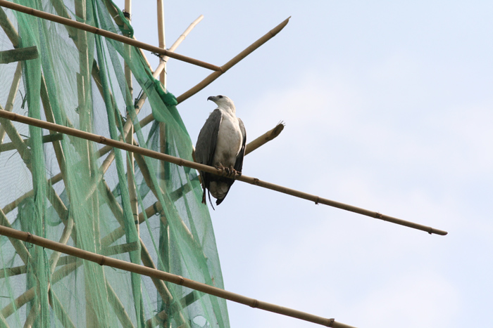 I've been sent info on and photos of an adult White-bellied Sea-Eagle, perching on bamboo scaffolding just west of Convention Centre.