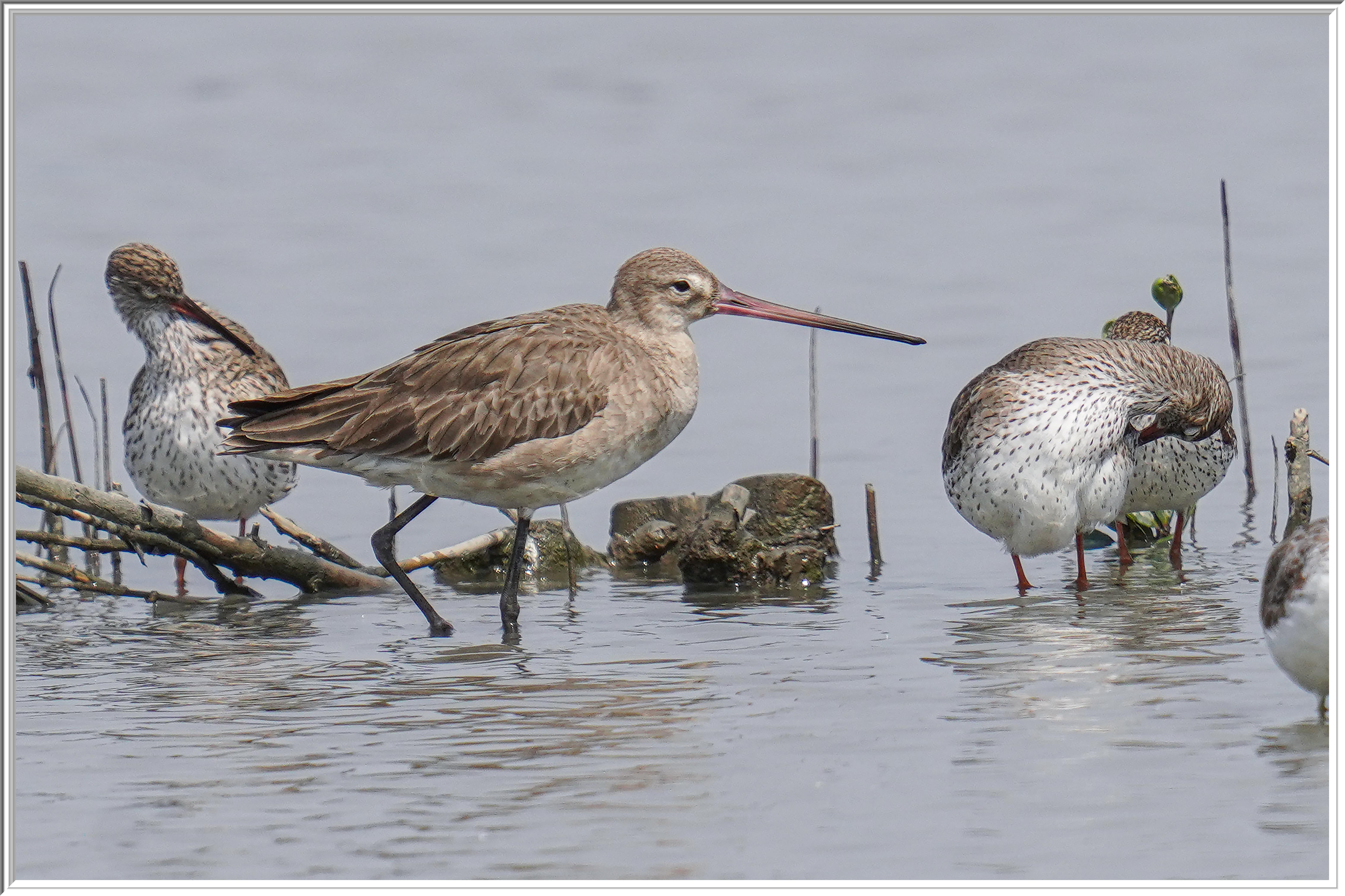 Just looking at its bill, it looks like a godwit but its plumage is in no way resembles that of a black-tailed godwit.
