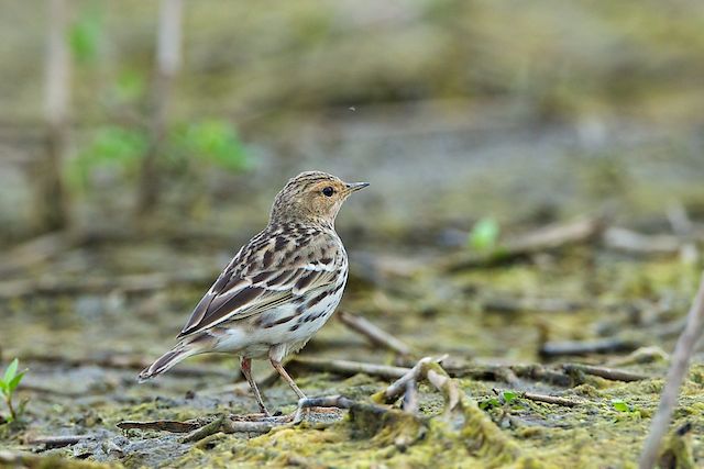 Richard's Pipit is larger and is relatively thinly streaked on the breast.