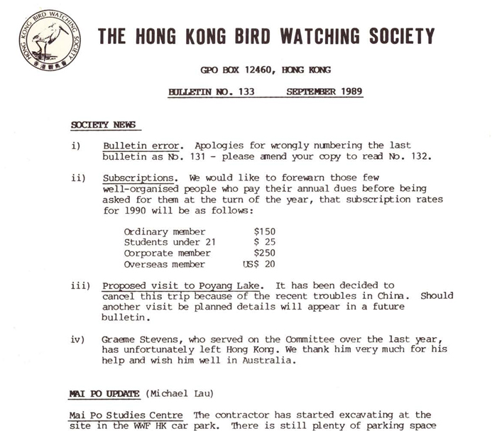 香港觀鳥會早期通訊 Previous bulletin of HKBWS