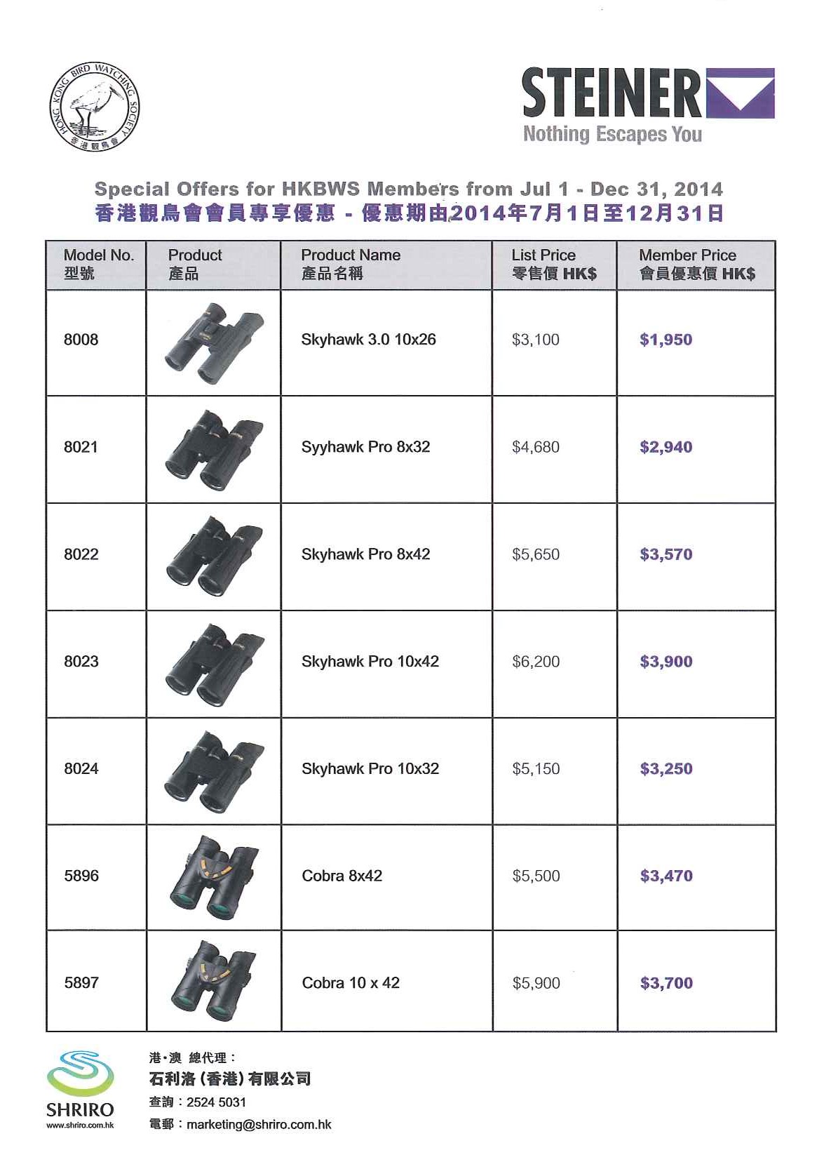 Special Offer of Steiner Binoculars 2014/07-2014/12