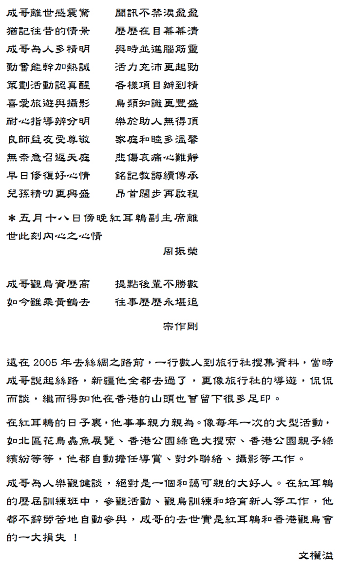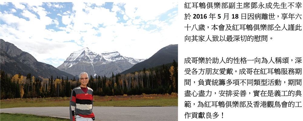 » 紅耳鵯俱樂部副主席鄧永成先生仙逝