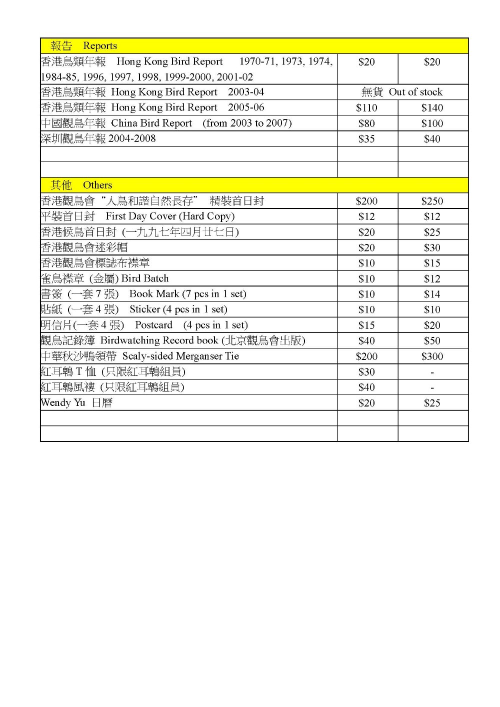 香港觀鳥會出售書籍等物品 Books & Others at HKBWS