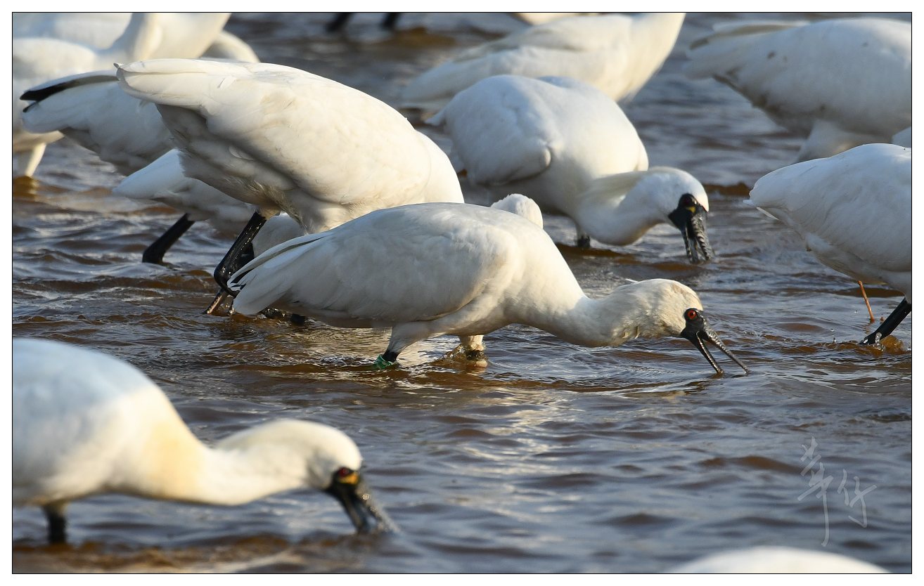 昨天, 三隻黑臉琵鷺戴上顏色腳環後, 在落馬洲濕地野放. 原因是這三隻琵鷺在二月中被發現病倒在這裡的魚塘中, 然後牠們被送往嘉道理農埸接受 治療及護理, 經過兩個星期的康復, 相信牠們已恢復, 可以放回野外.