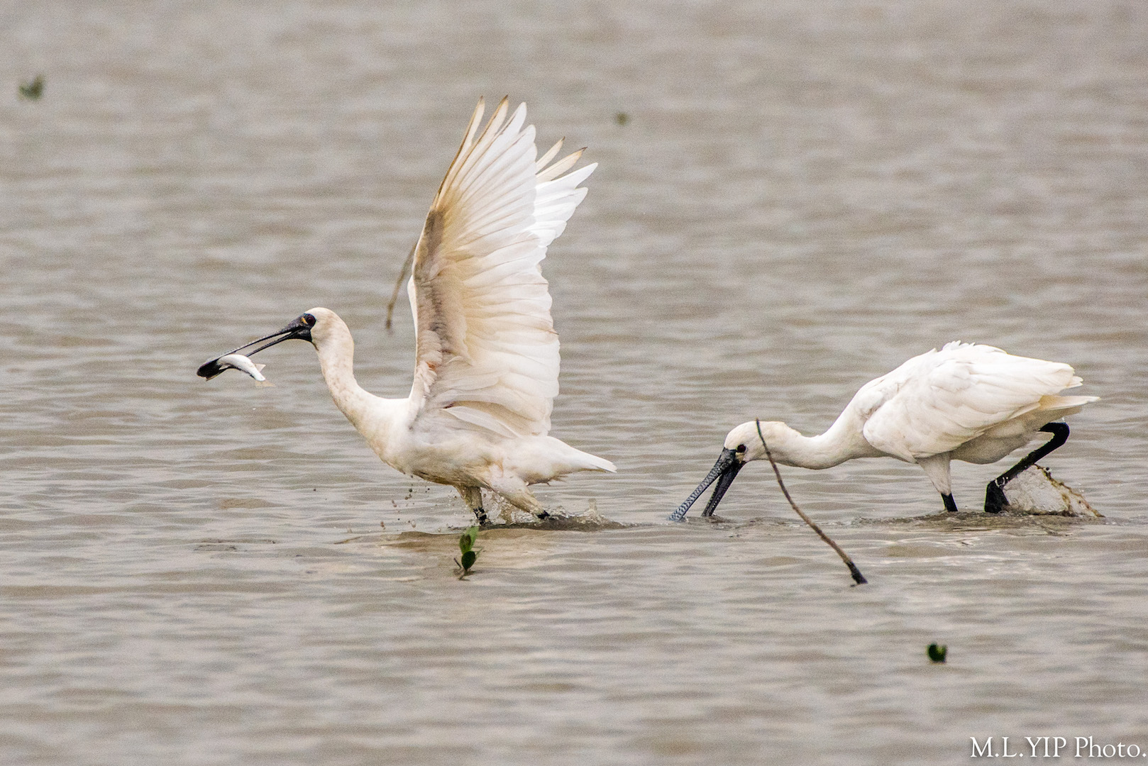 二零一九年一月十五日下午,在米埔浮橋外北鳥屋的泥灘上,看到幾隻黑臉琵鷺頻頻有收穫,也替他們開心呀.