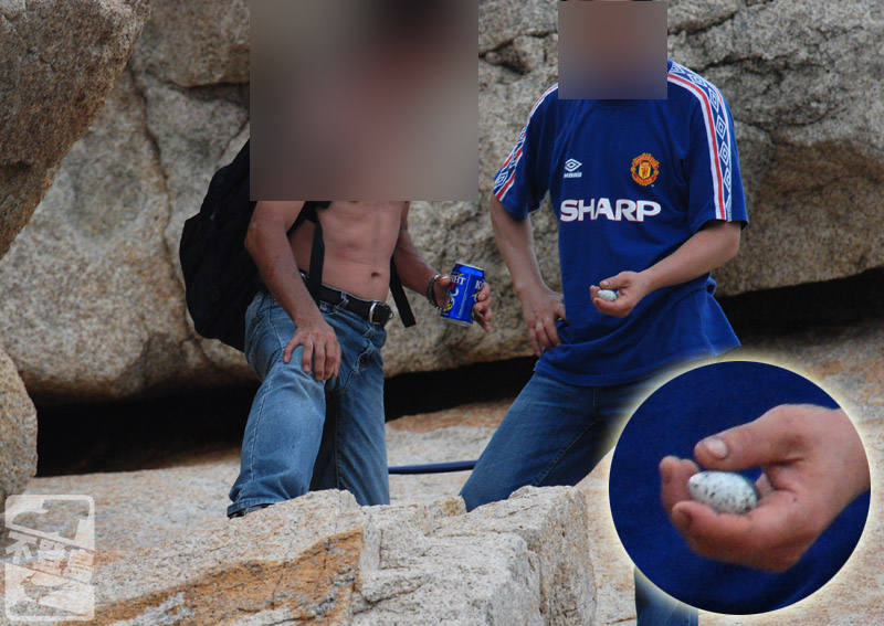 我們今年曾多次到燕鷗島 A 拍攝和做調查,5月17日、5月25日、6月9日以及7月13日都發現有釣友登島,對燕鷗造成極大干擾。6月9 日一次同時有十多人在島上活動,7月13日更有人在眾目睽睽之下拾起鳥蛋把玩,不難想像四野無人的時候會發生甚麼事!當地燕鷗數目大幅減少,除了因為最近天氣欠佳之外,人為干擾無疑是重要原因。7月13日干擾事件之後,有版友分別在7月15、16、17及18日再去觀察,燕鷗數目已銳減至9隻,之前的人為干擾明顯是元兇。