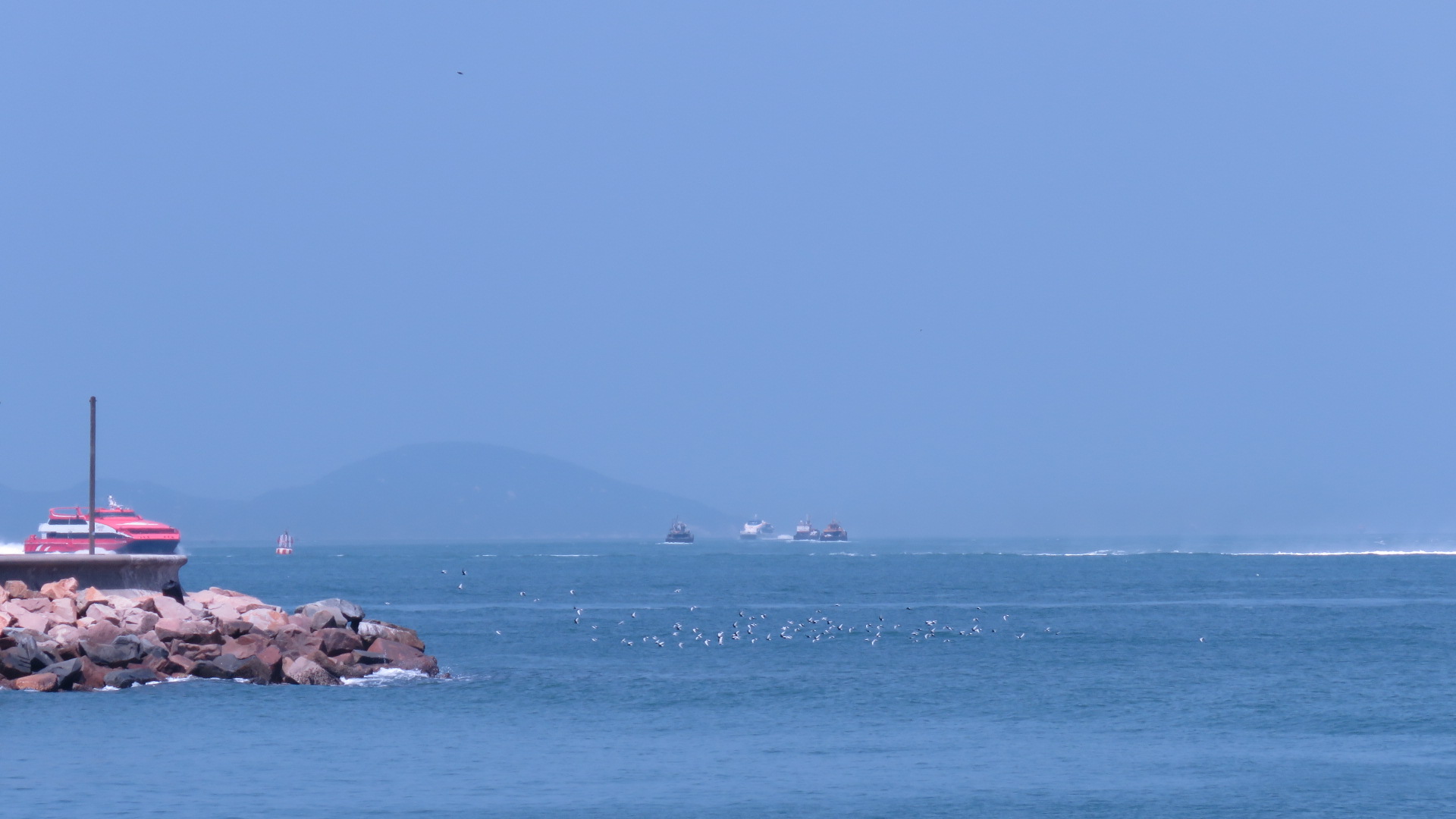 Saw them again in flocks flying low over the surface of the sea.