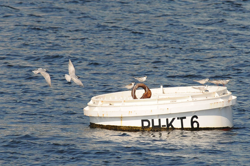 Around 40 terns, probably all Whiskered, were seen at the buoys today.  This is the largest number over the years, may be due to the typhoon.