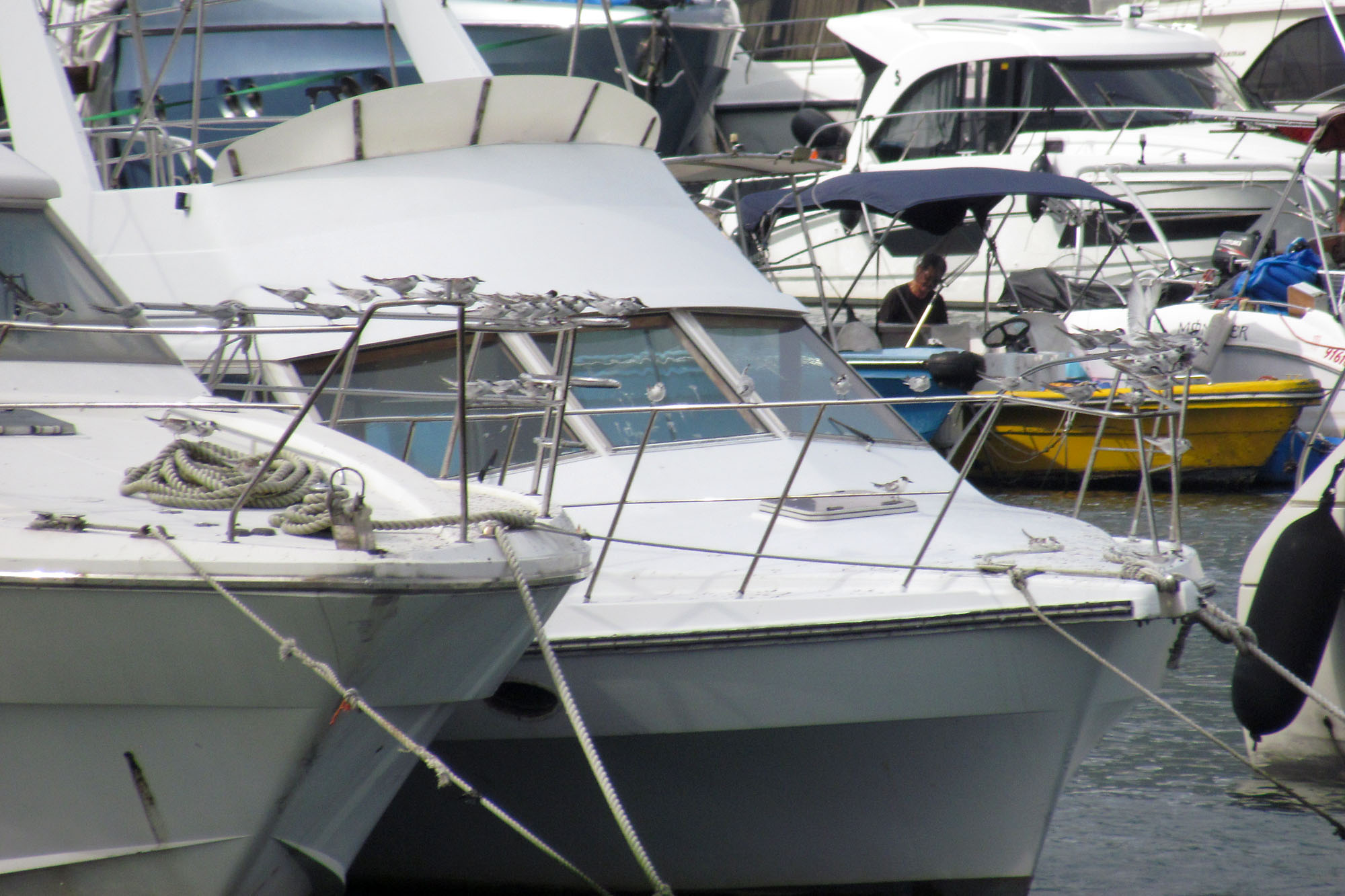 今天最少有 50 隻在遊艇之間休息和覓食.