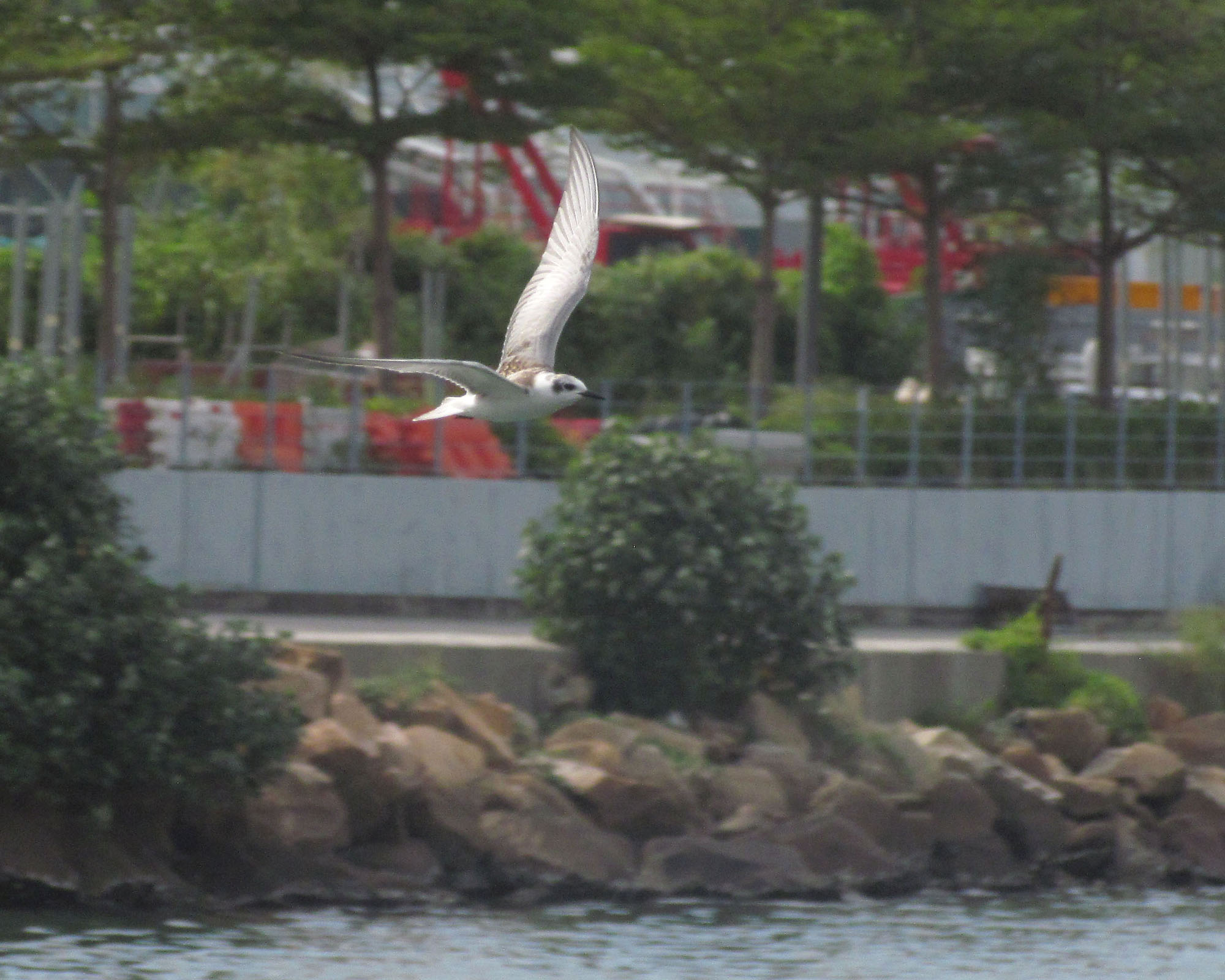 昨天早上有一隻鬚浮鷗在舊機場消防局旁,幾分鐘就飛走了。