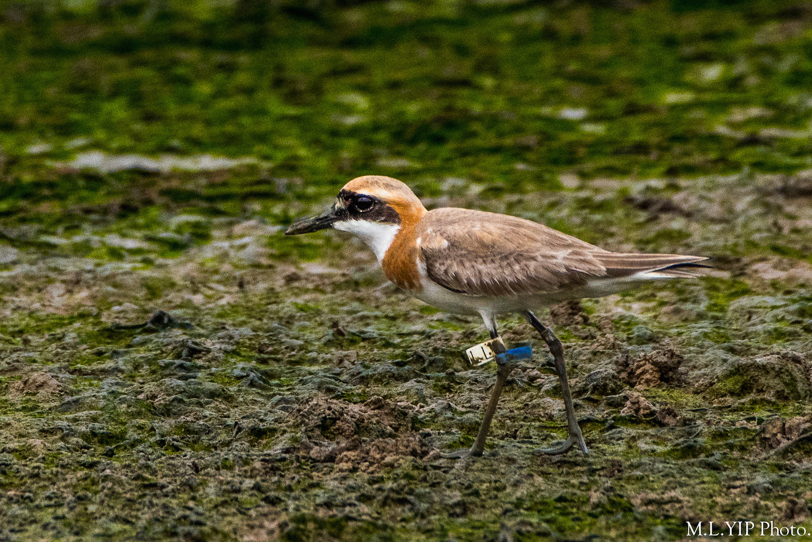 這隻繋上了足旗的鐵嘴沙鴴,是四月十三日在浮橋外北觀鳥屋看到, 可惜足旗沾了污泥,看不清編號.