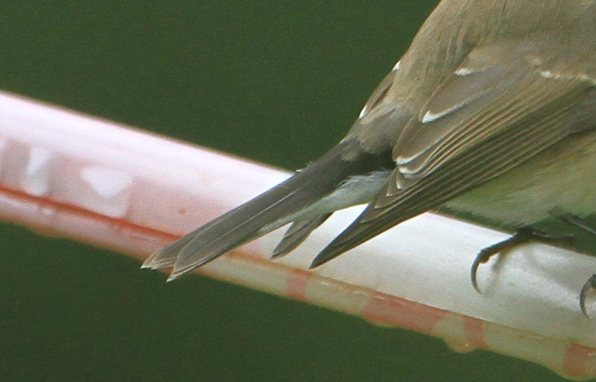 sorry for the poor qualities of the photos. Here are more pictures showing its upper tail coverts, base of its bill and lower mandible.