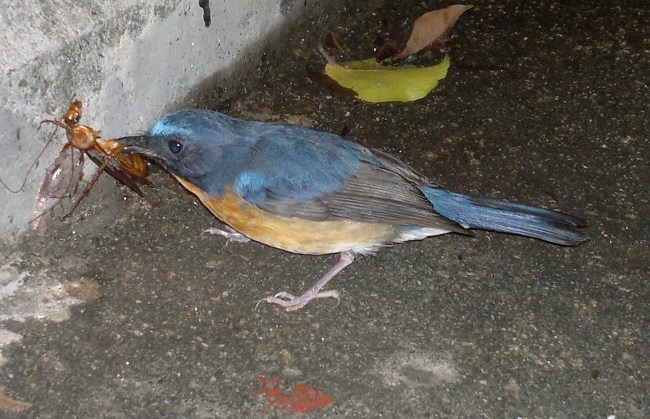 This Blue-throated Flycatcher was observe near my home Western Hong Kong Island along the path of a pedestrian stairwell after coming back from Po Toi at about 19:45. It was very exhausted and I could get extremely close and take these photos with my cell phone.