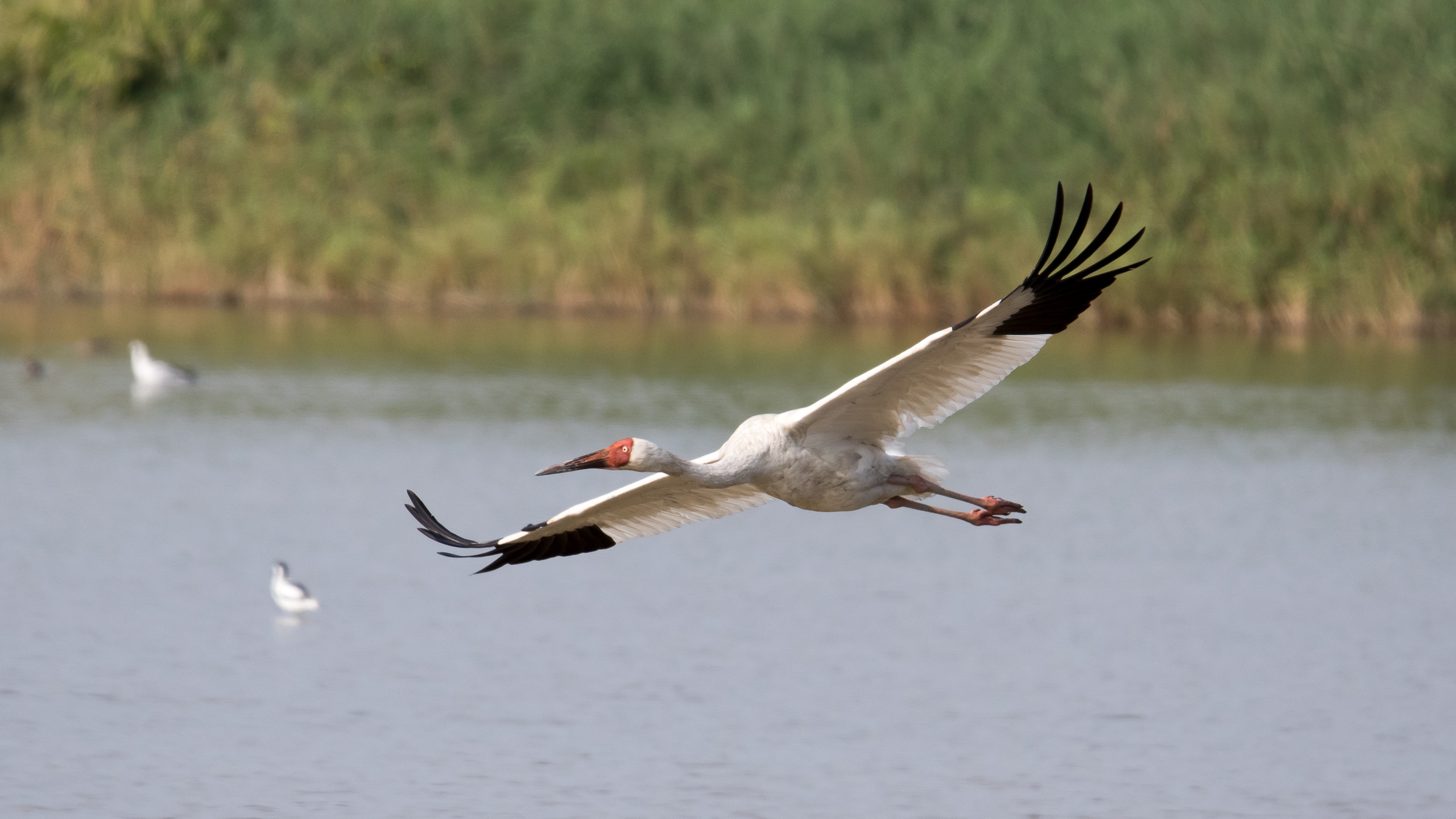 » White Crane flying up to the sky