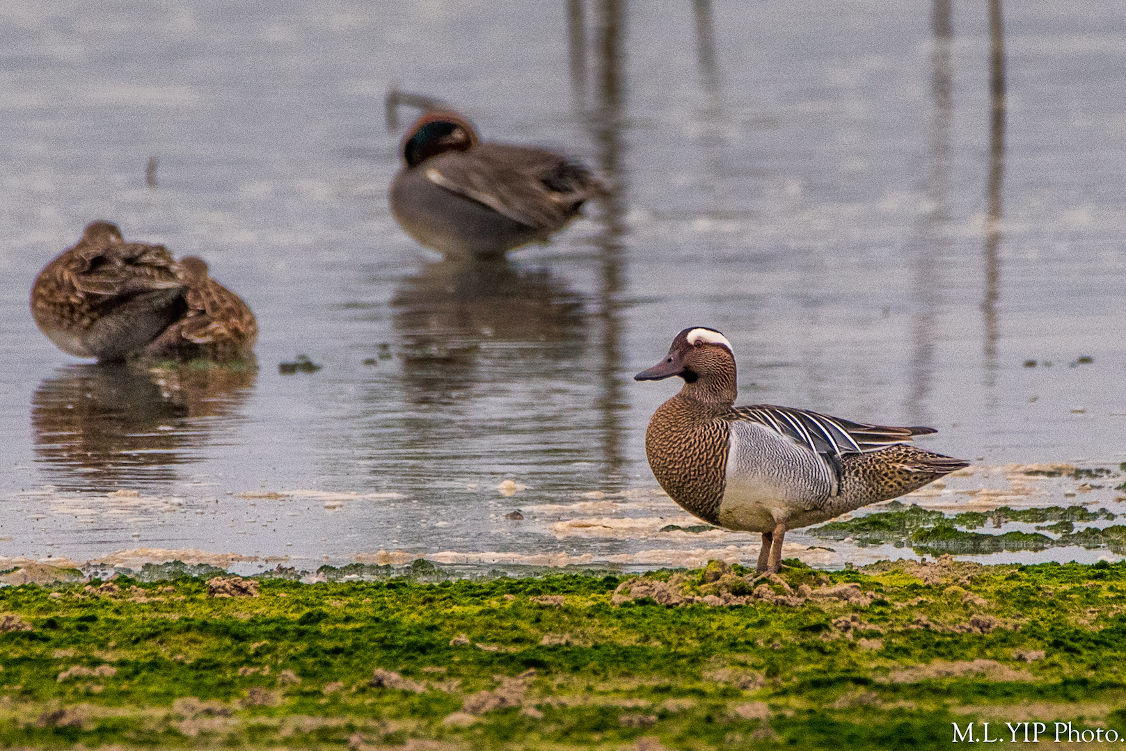 泥灘有隻白眉鴨.
