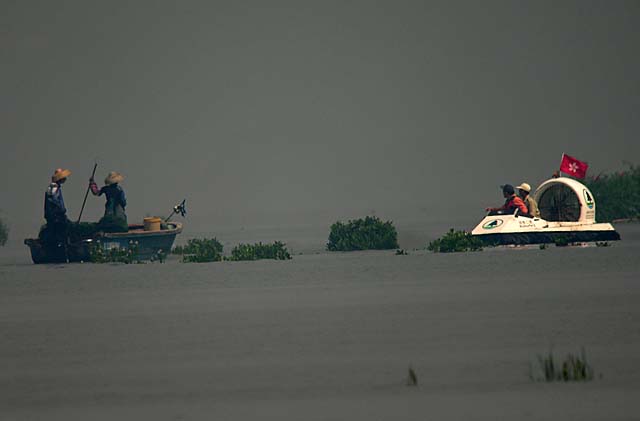 This confrontation happened yesterday (2nd).  The hovercraft crew just waved for the fishermen to leave the area and they started pulling in their nets. Neil.