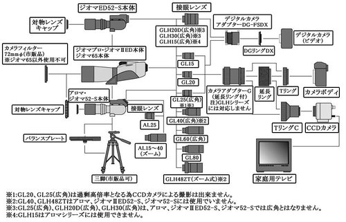 2.數碼機(DC)倍率不能太高 : 約只能使用 3X-6X 光學倍率的機種 ; 目前很多相機本身光學變焦即達 10X - 20X (所謂的小巨砲型數碼機(DC)) 都不適合拿來接單筒望遠鏡