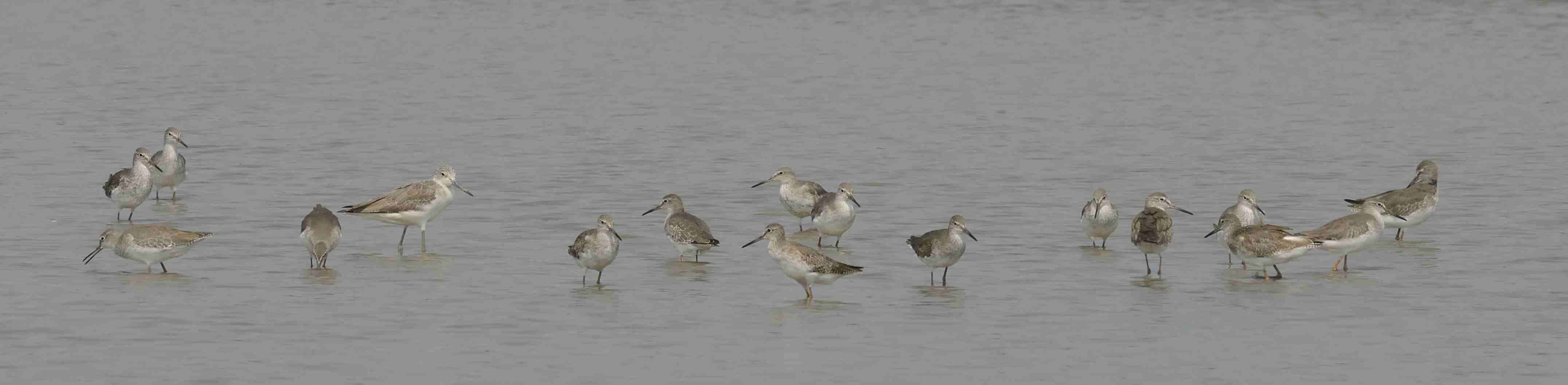 Many Common Redshanks and a Common Greenshank. May be more.