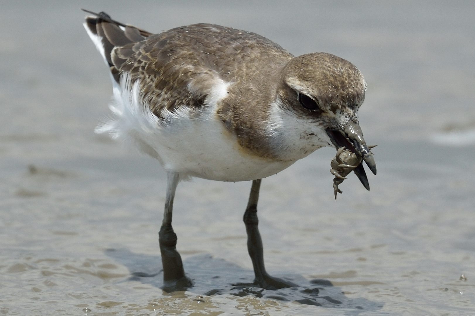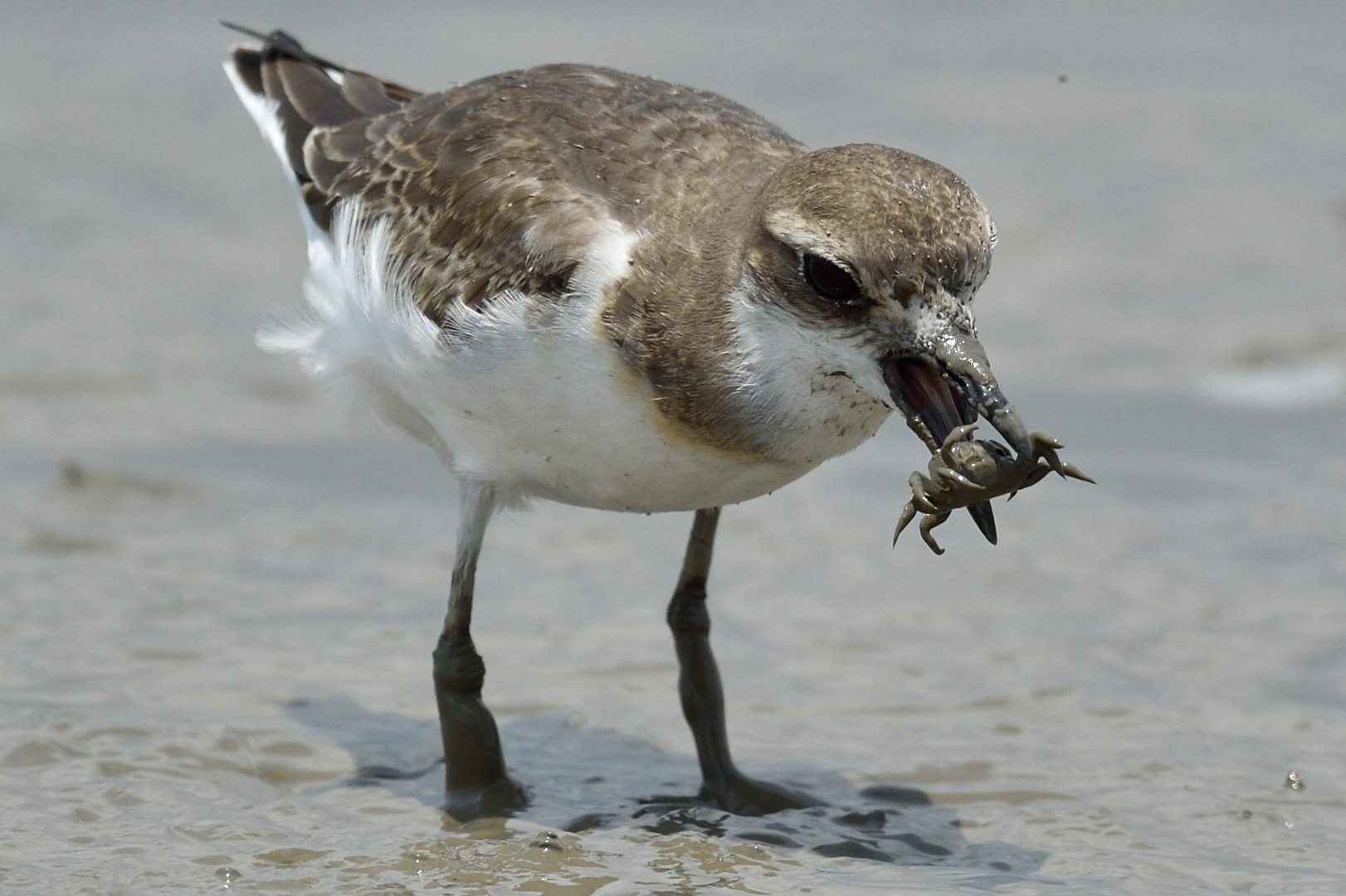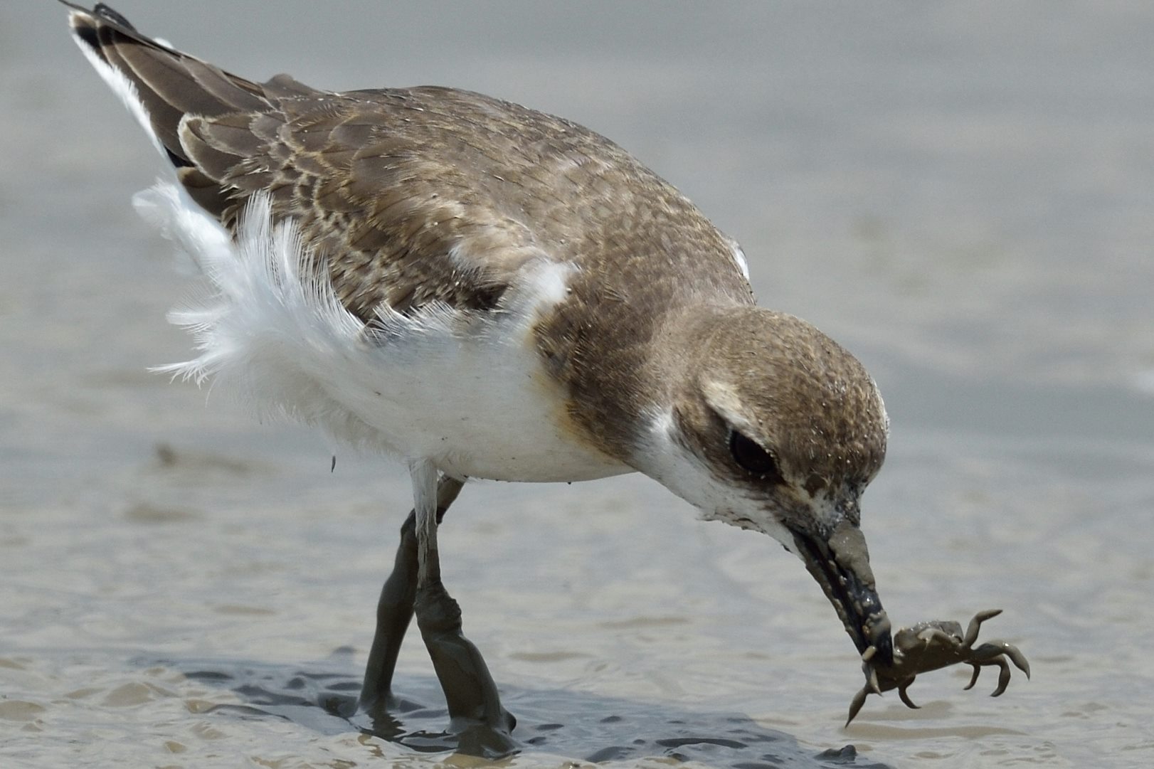 It is interesting to note that while some waders like whimbrel will tear off the limbs of a caught crab, eat the limbs one by one, and then swallow the body at last, this little one simply swallowed the whole crab in one go.