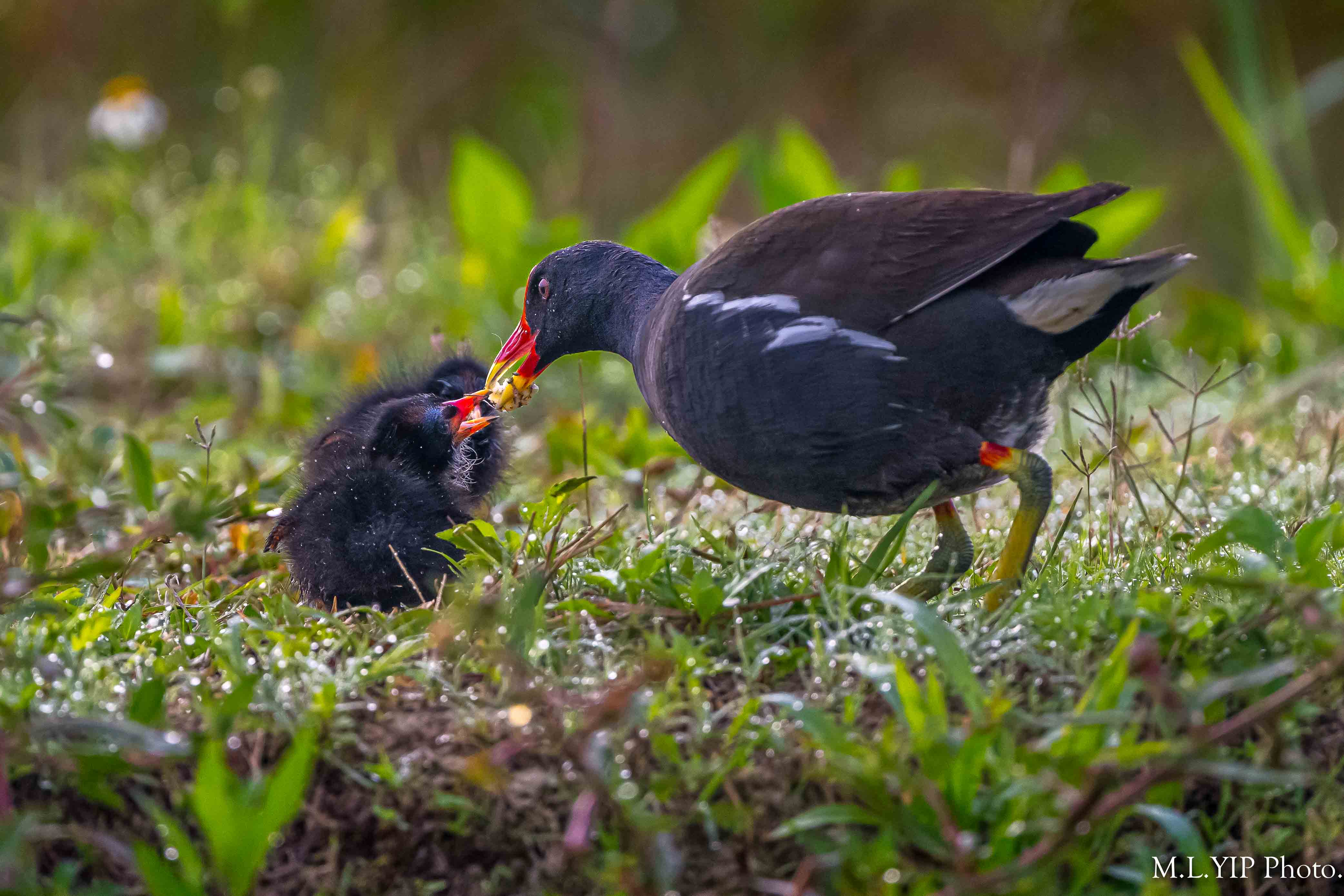 黑水鷄撿到田螺,馬上將它砸破,然後帶回去餵幼鳥.