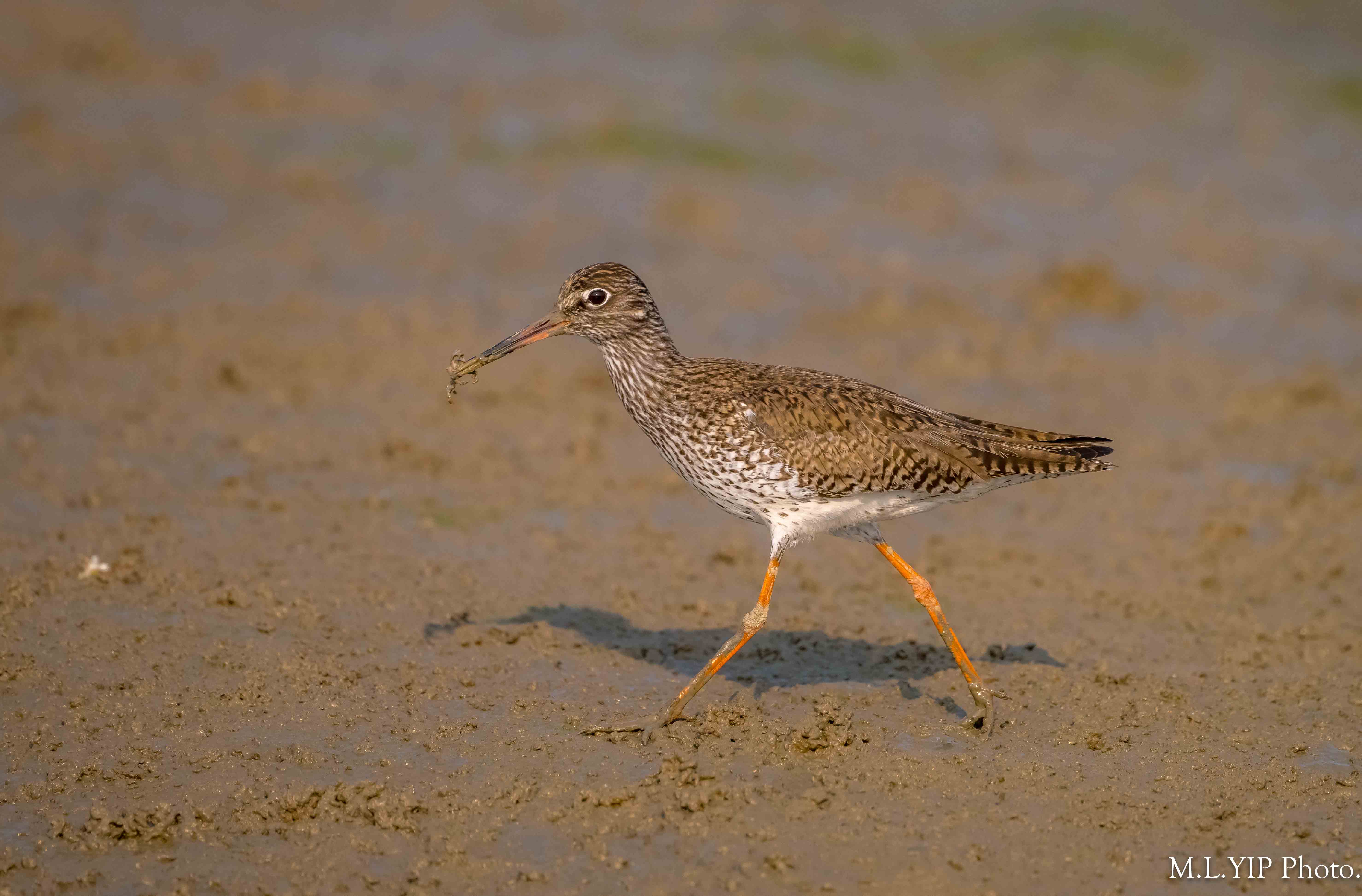 紅腳鷸捉到小螃蟹,也會在水中清洗乾淨,然後才慢慢食.