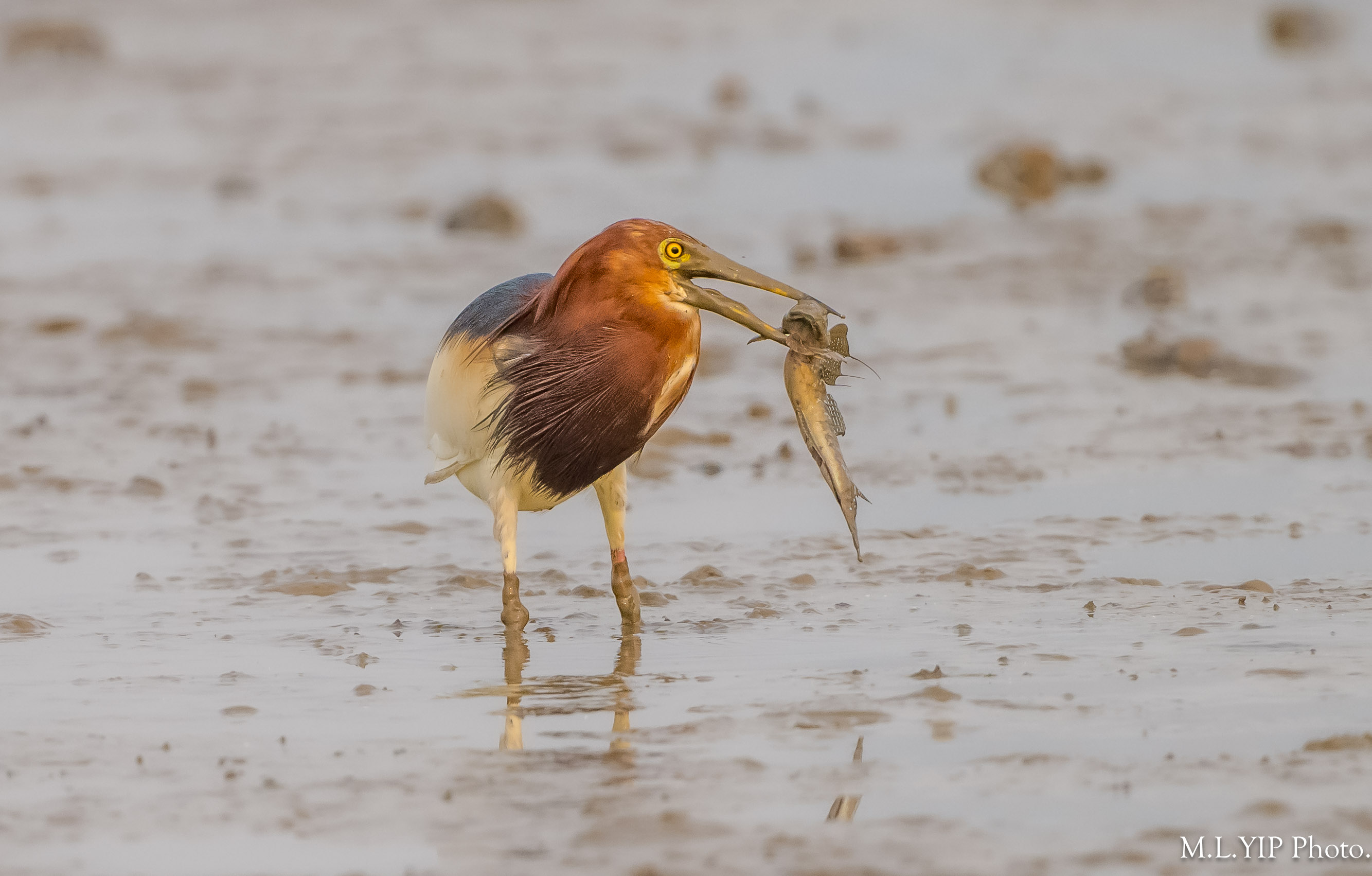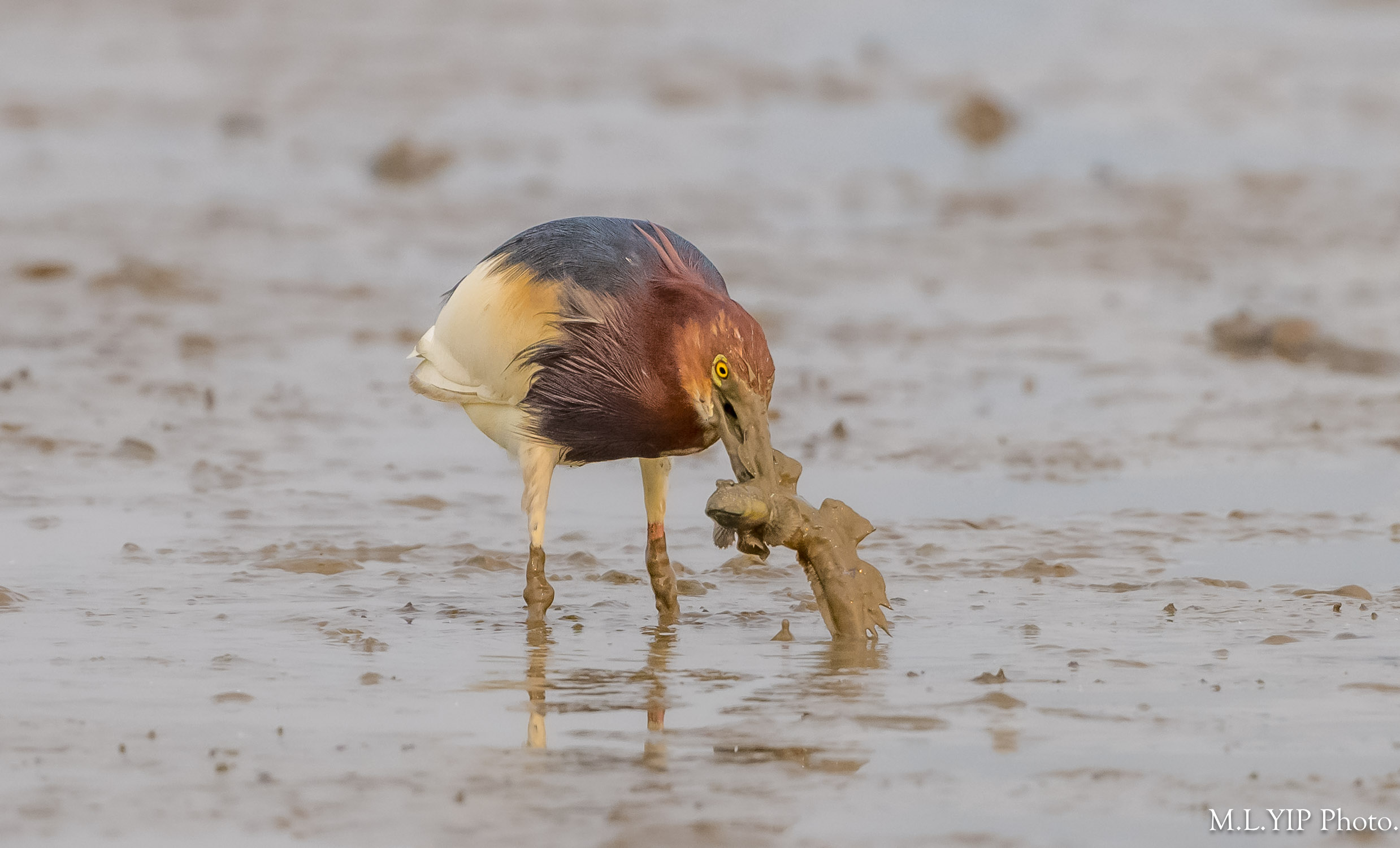 原來池鷺捉到彈塗魚後,也會清洗一番才慢慢吃.