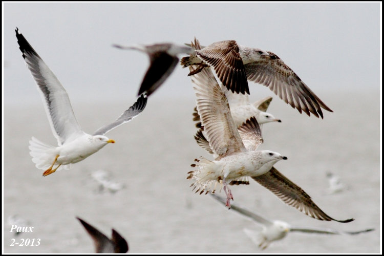 The two closest first-years in the middle and lower photos are neither of them the same bird. The highest bird is heuglini (no pale inner primaries, broad tail band (though not occupying all of tail), while the lower is mongolicus (obvious pale inner primaries, narrow tail band, overall paleness).