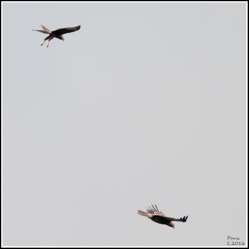 Yesterday afternoon 3 raptors were seen high up in the sky. At first, the Imperial Eagle was attacked by the Eastern Marsh Harrier.