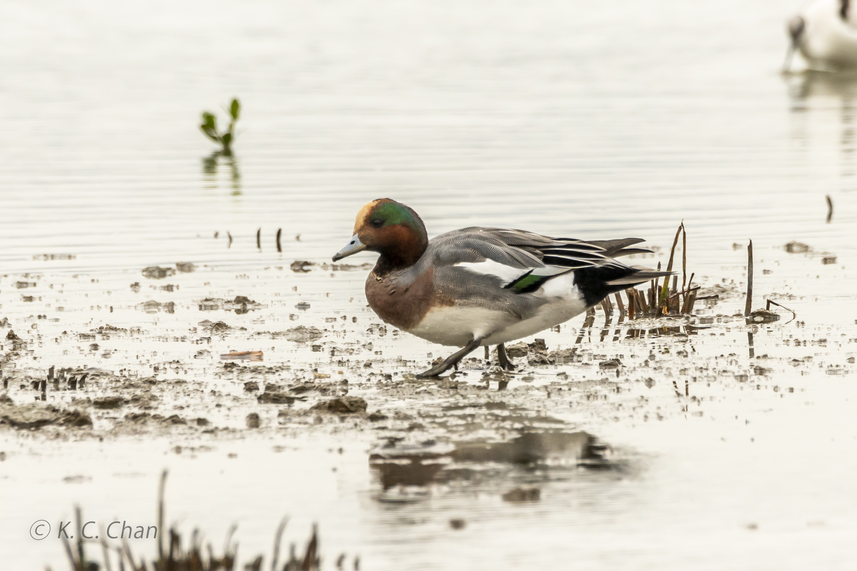 This looks more a Eurasian Wigeon x American Wigeon hybrid.
