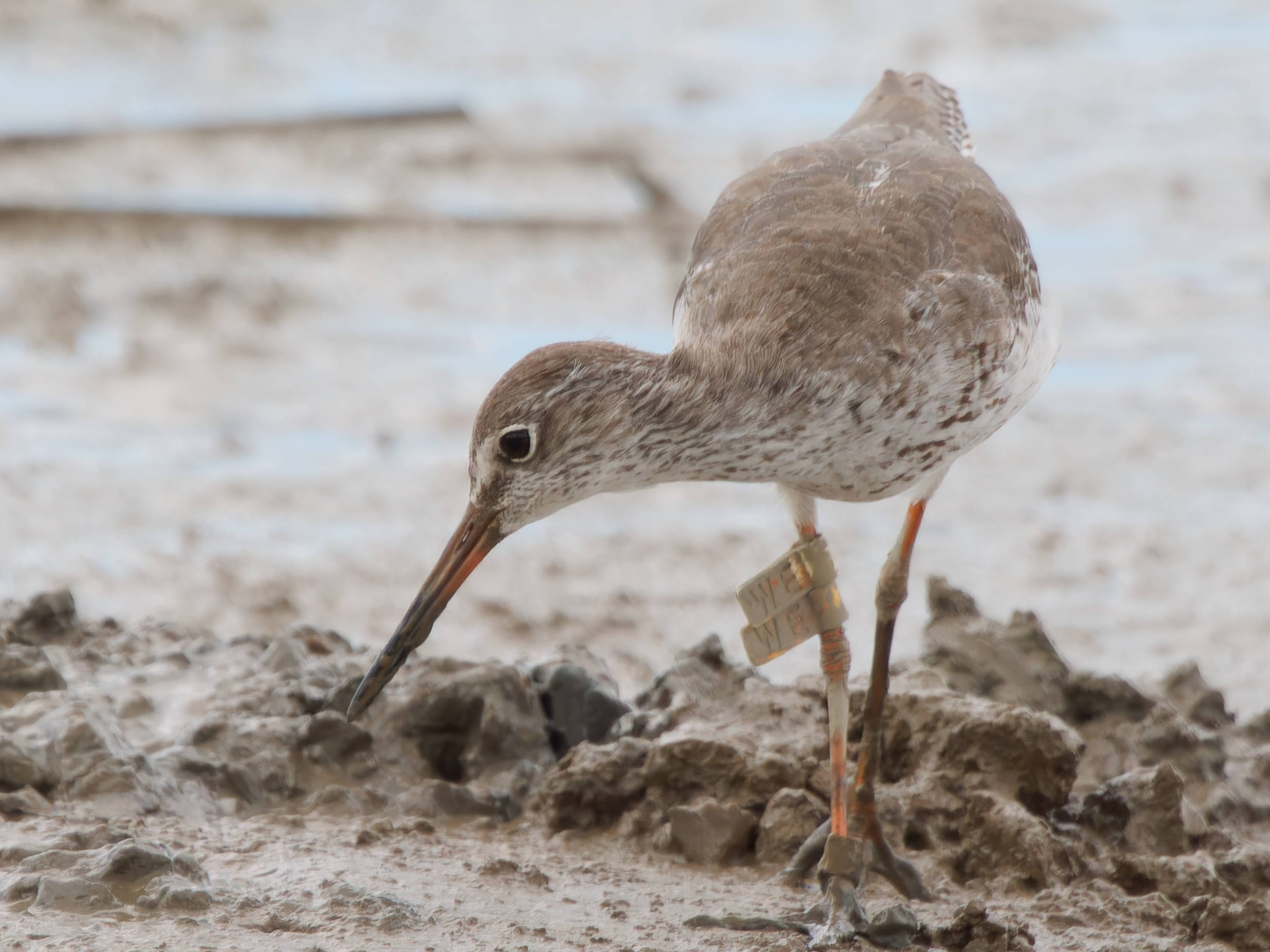 Fortunately the flag XE has not been used on Common Redshank yet, so this bird is KE, ringed on 10-Sep-2021. It was reported 18 times at Mai Po and Futian, Shenzhen. This is the 1st record of this bird this season (2023-24).