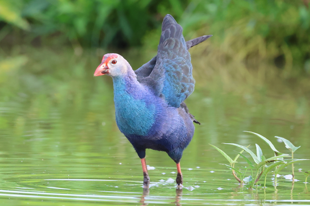 紫水雞做早操