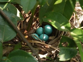No I didn't disturb the birds and I never disclose locations of nests. The nest is 1m off the ground on the side of a popular hiking trail. The nest photo could help identify the bird. I have a nest and egg field guide for where I'm from and it's quite helpful in sorting out the species.