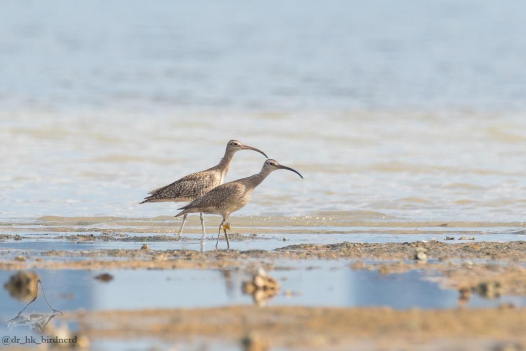 The tagged whimbrel flew in with 7 others, though I only managed to get 6 of the group in frame.