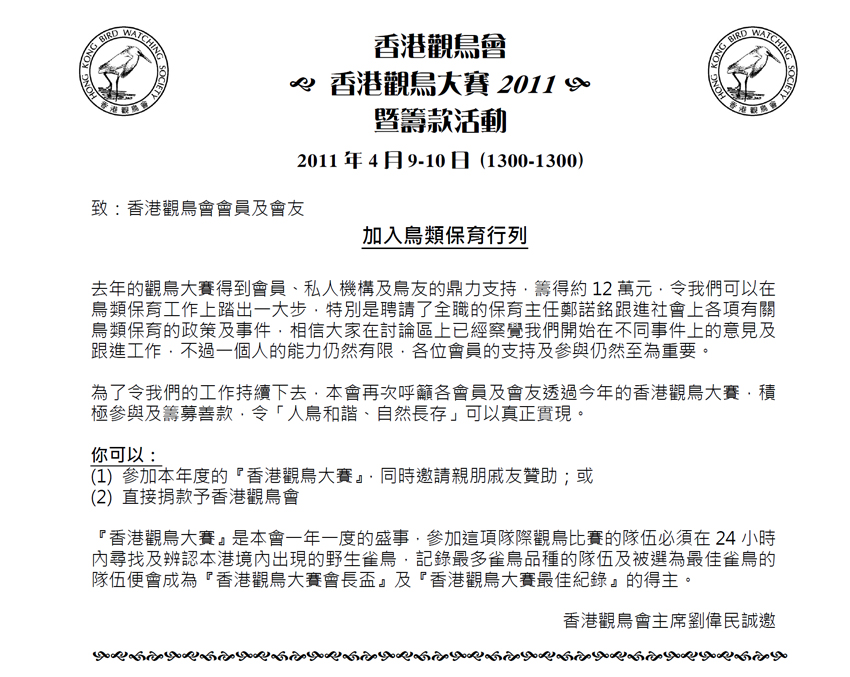 » 香港觀鳥大賽 2011 Hong Kong Bird Race 2011