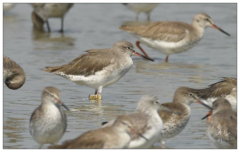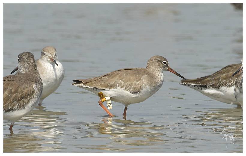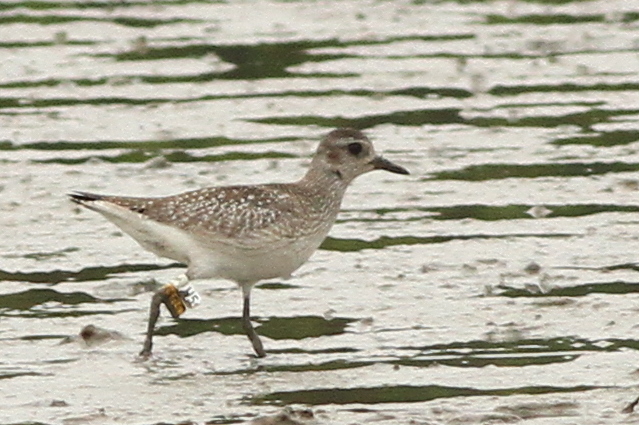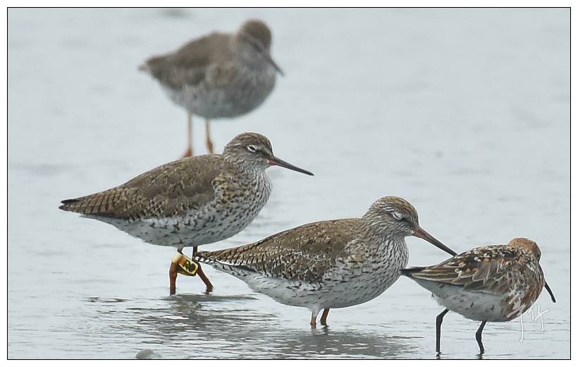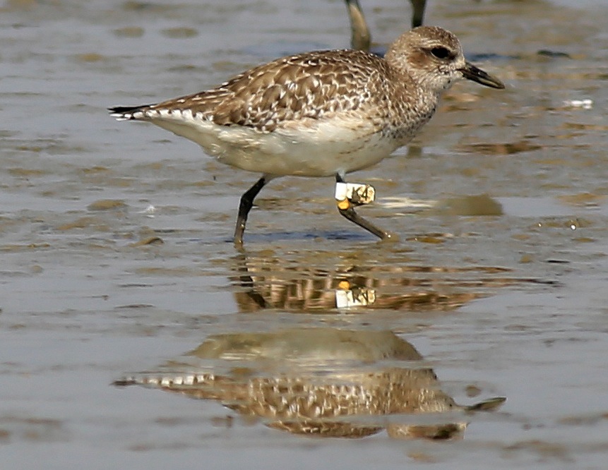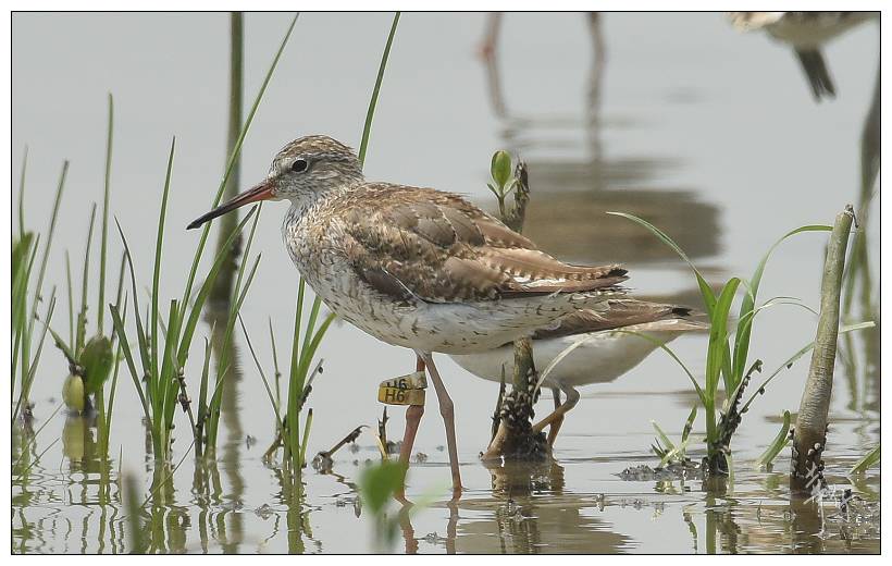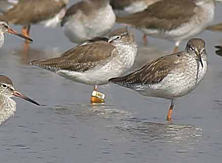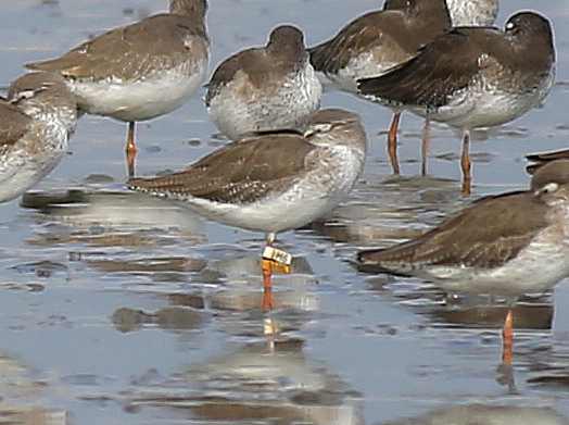 Curlew Sandpiper CC is a very interesting bird. We trapped and flagged this bird at Mai Po on 6th May 2016, only four days before this sighting. But the bird was already carrying a metal ring, having been previously trapped in Malaysia. From the number on the ring we have been able to trace this as a bird that was ringed at Kapar Power Station, Kuala Lumpur, on 23rd March 2016, 44 days before it was recaptured at Mai Po. This is our first ever recovery of a bird ringed in Malaysia. We added the flag in the hope that we will get more information about the migration of this bird, which can be shared not only in Hong Kong but also with the Malaysian ringing scheme.