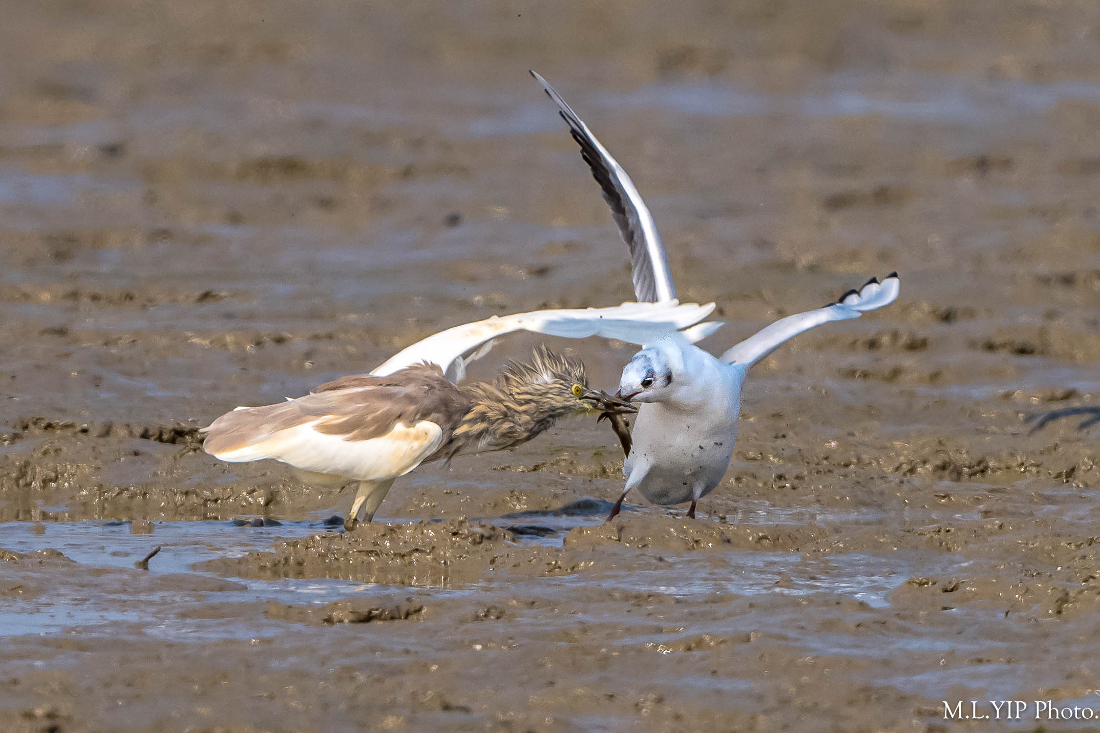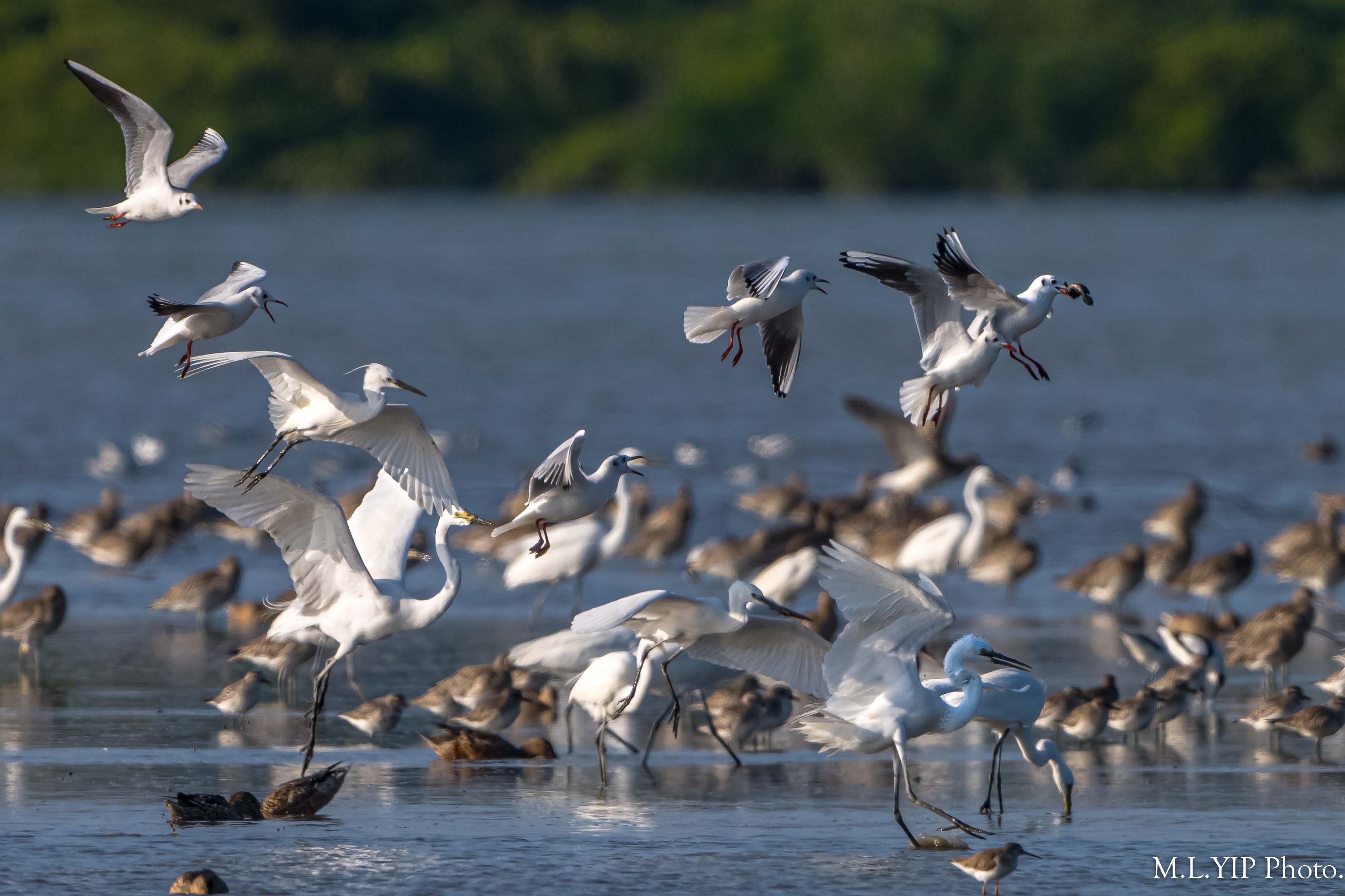 觀察所見,小白鷺嘴中的彈塗魚,最終都被紅嘴鷗搶走了.