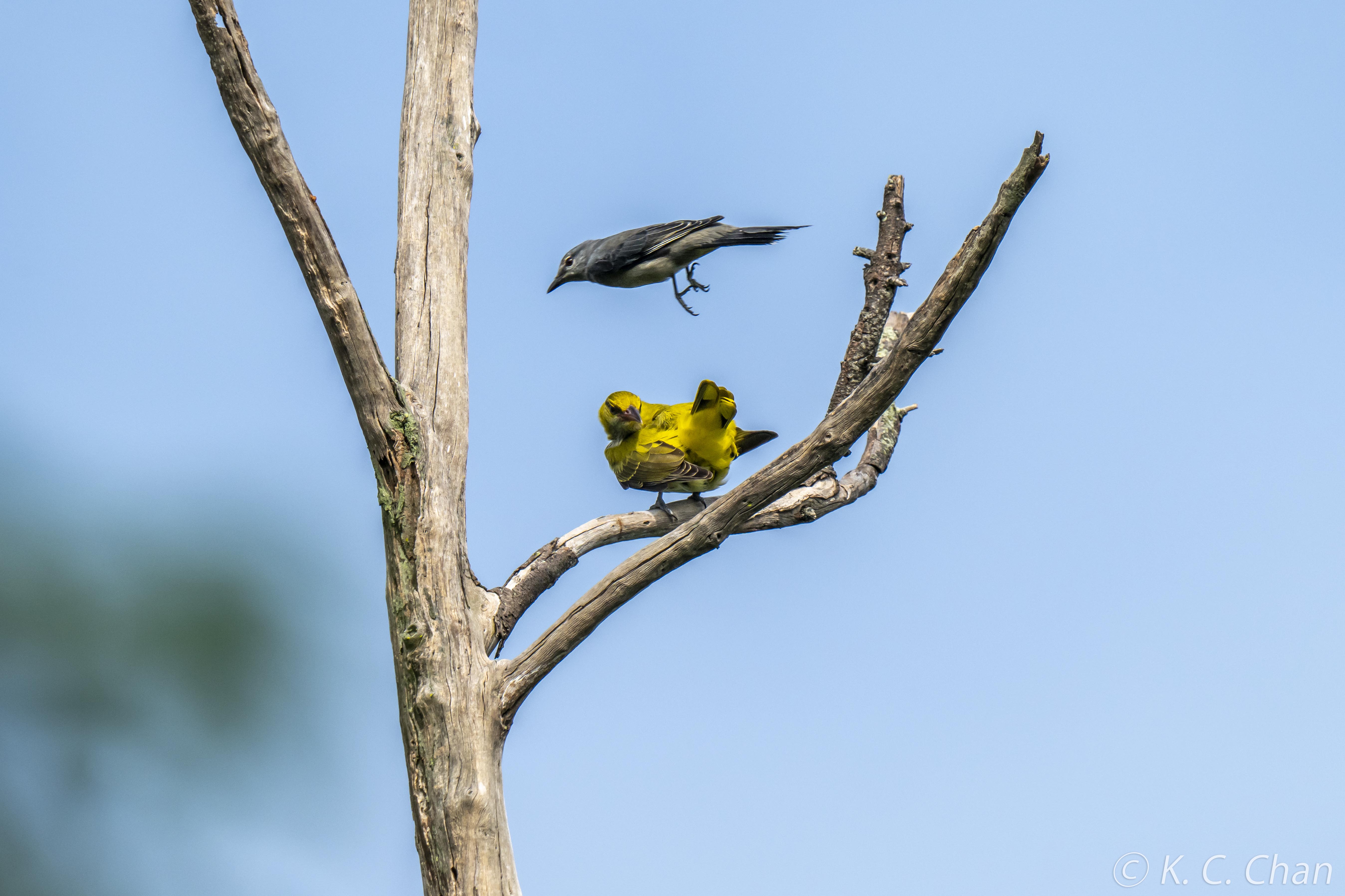 Black-naped Oriole, Ashy Drongo