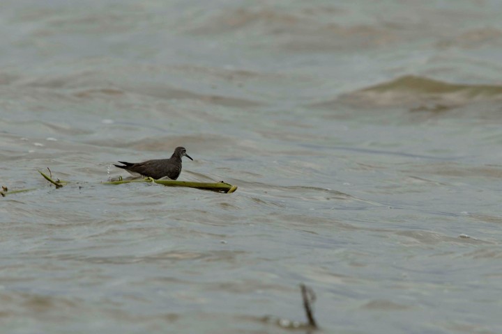 A grey-tailed tattler got caught up in high water in Maipo on May 14th. It stood up to the rough sea struggled to maintaining balance on a slender branch for hours. Fortunately, the high tide carried the branch towards the coast and it quickly disappeared behind the water weed plantation.
