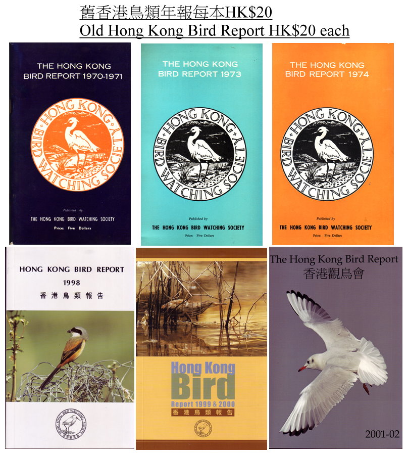 Other older bird reports are sold at HK$20 per copy,   available for the years of :