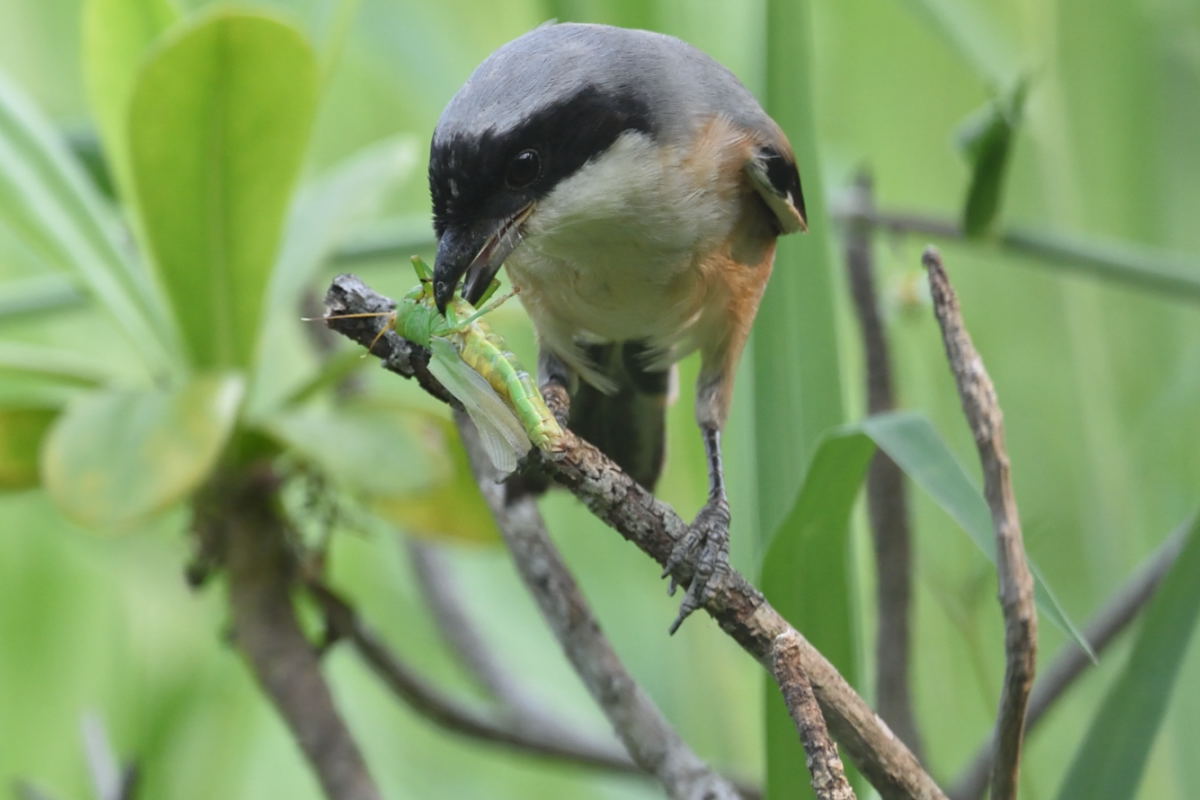 And while we like chicken drumsticks, this bird likes grasshopper 'drumsticks'...