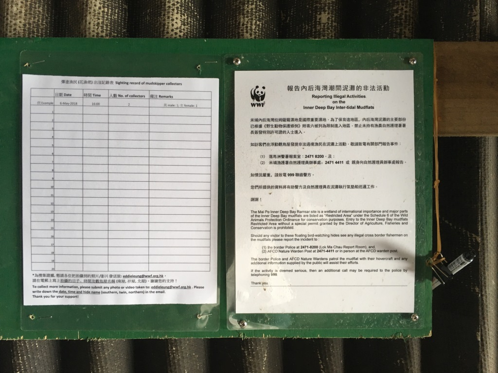 To facilitate the reporting of illegal activities on the mudflats, a record sheet “Sighting record of mudskipper collectors” will be placed at 4 floating birdwatching hides for visitors to fill in. If you take any relevant photos or videos, please send them to: