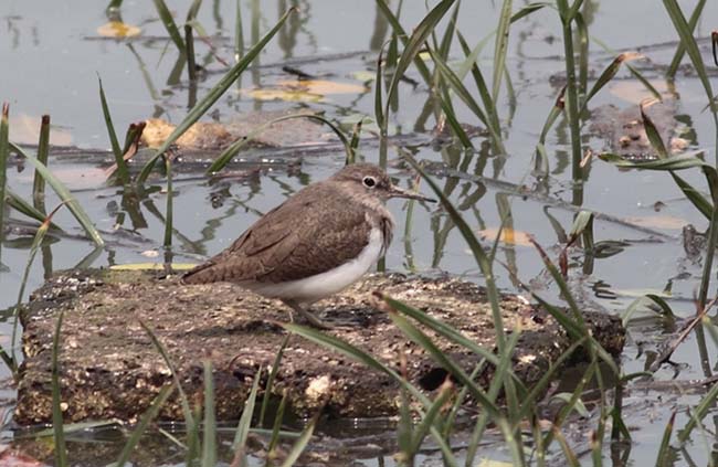 This is a Common Sandpiper - the way the white of the flanks extends up towards the shoulder is often said to be the most obvious feature, but in the field there are a number of 'jizz' elements which make it clearly either this or the very similar North American sister species Spotted Sandpiper.