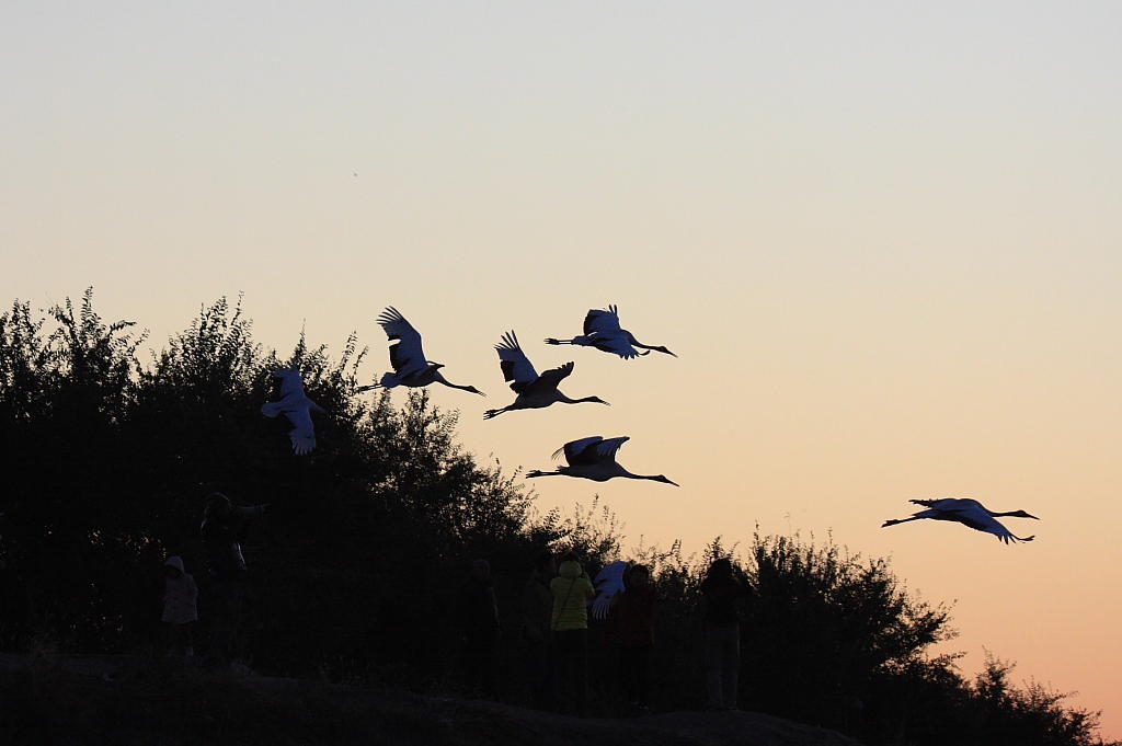 向海保育塲放飛丹頂鶴.