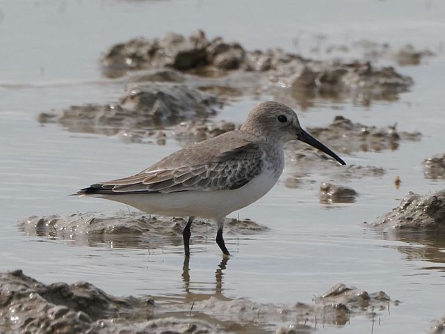 Both Dunlins, adult winter plumage. Note the rather plain face and short tibia; Curlew Sand should have a more pronounced hint of a supercillium and a longer tibia.